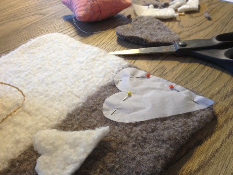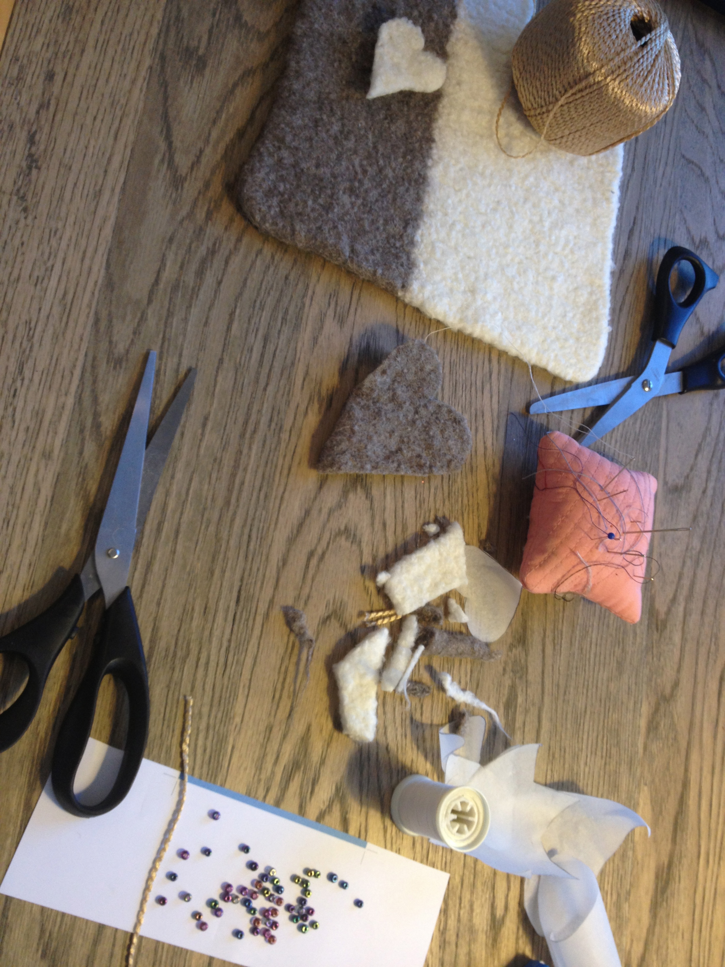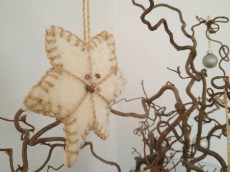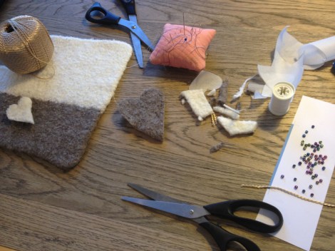 I år går det i strikking og toving av stjerner og hjerter. Til pynt på bord og til å henge på treet. Hvis det blir noe tre her i huset da..