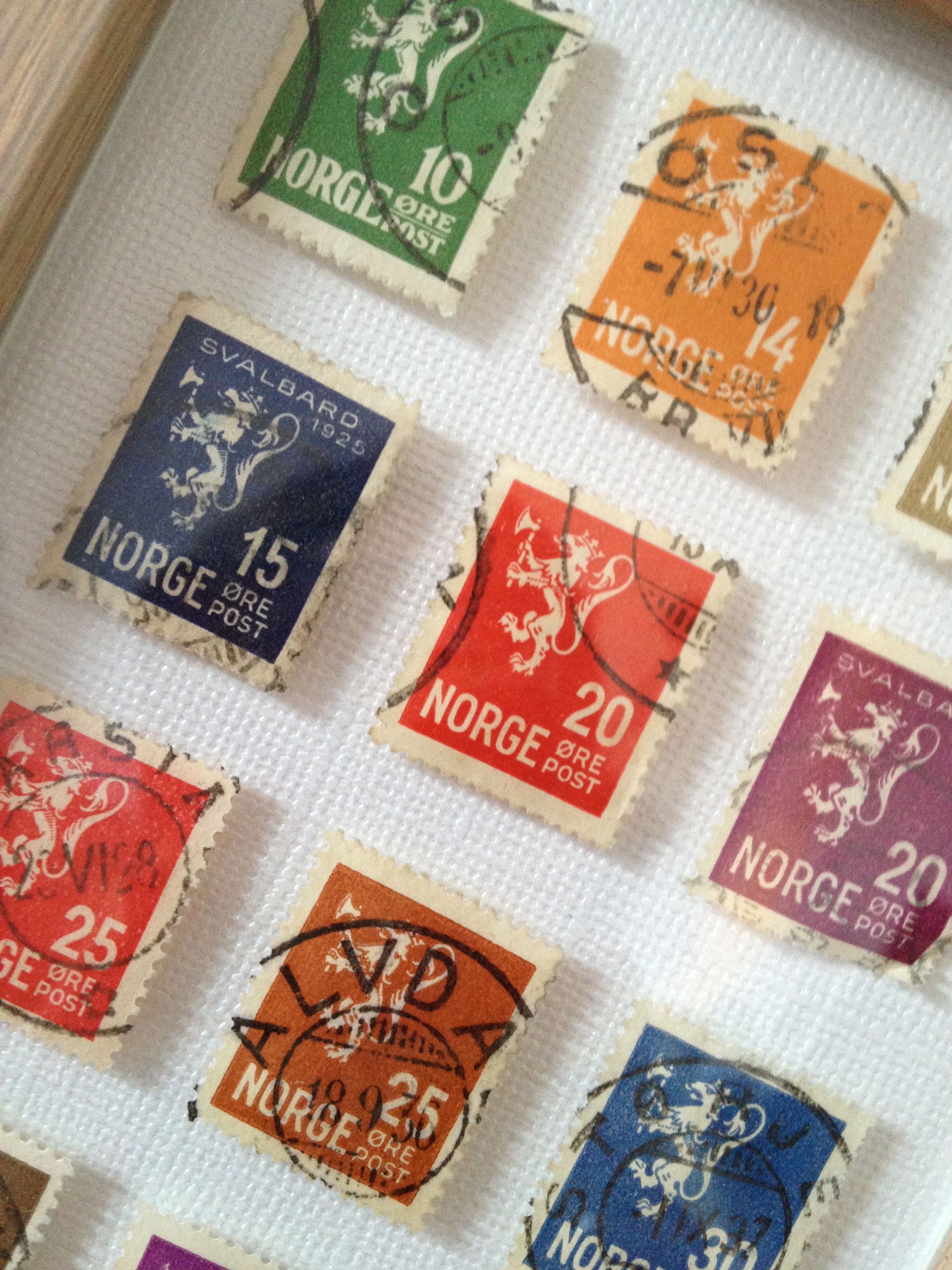 Mer frimerker. Boltrer med i Pers frimerkesamling. Her har jeg laget en sammensetning av de norske Løveprovisorier som ble utgitt i Norge i perioden 1926-1937.