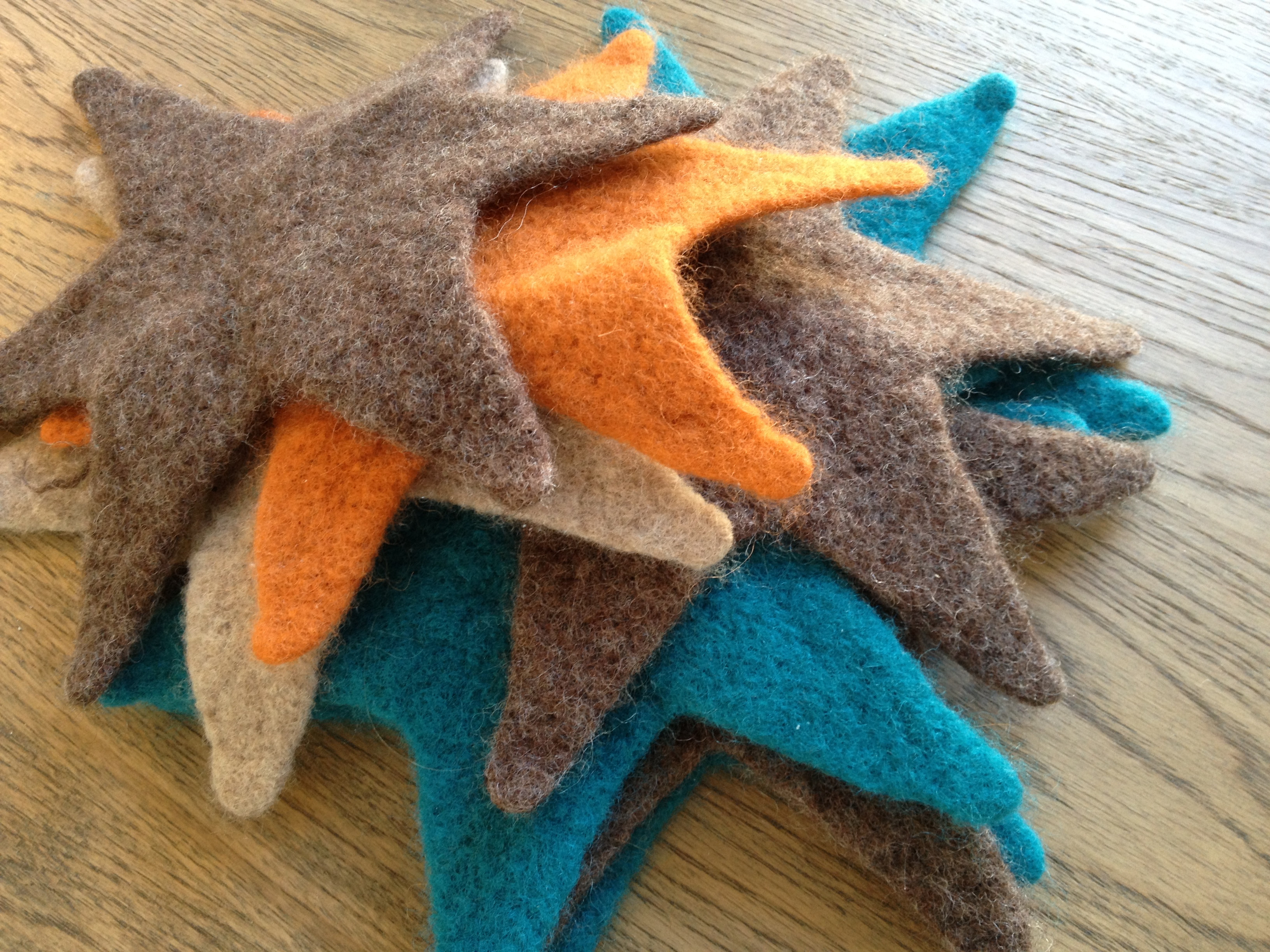 Jeg har strikket ny stjerner i flere farger, begynte å bli lei de røde jeg strikket til jul. Oppskriften er fra Garnstudio. Disse har jeg strikket på pinne 6 i Pt2, syns dette gir et bra resultat når det toves.