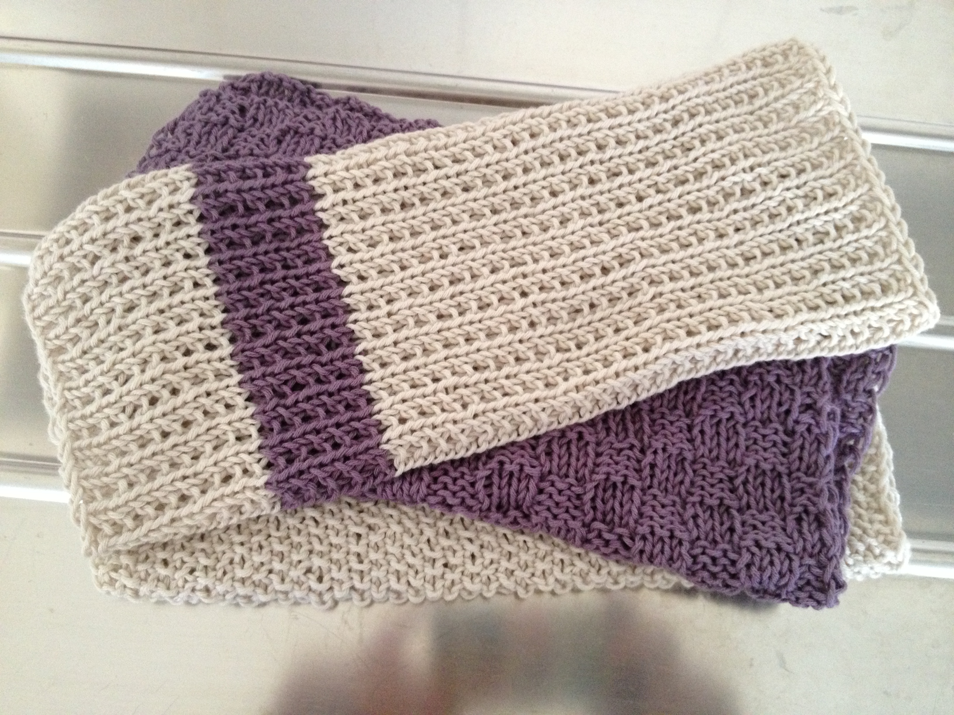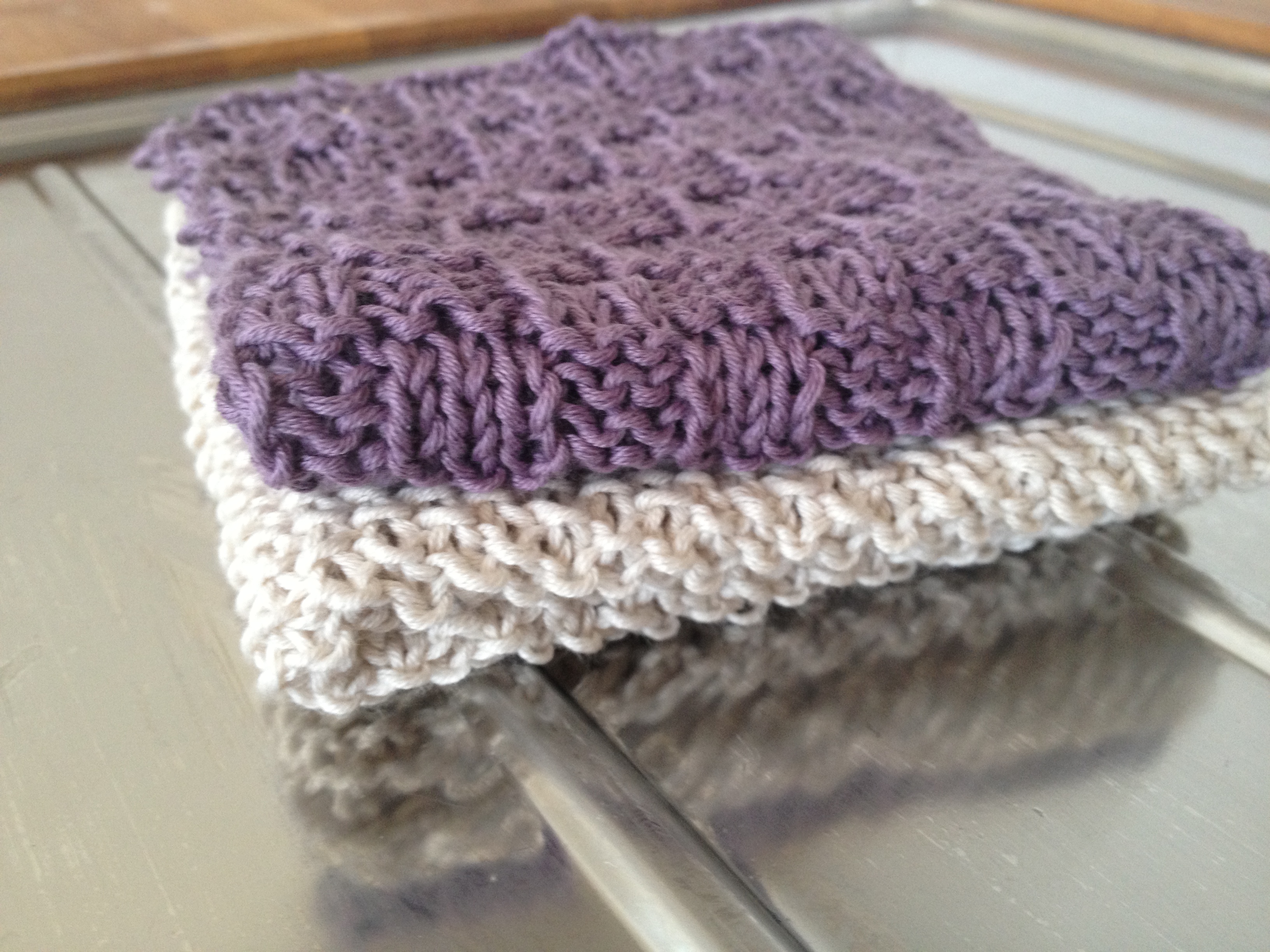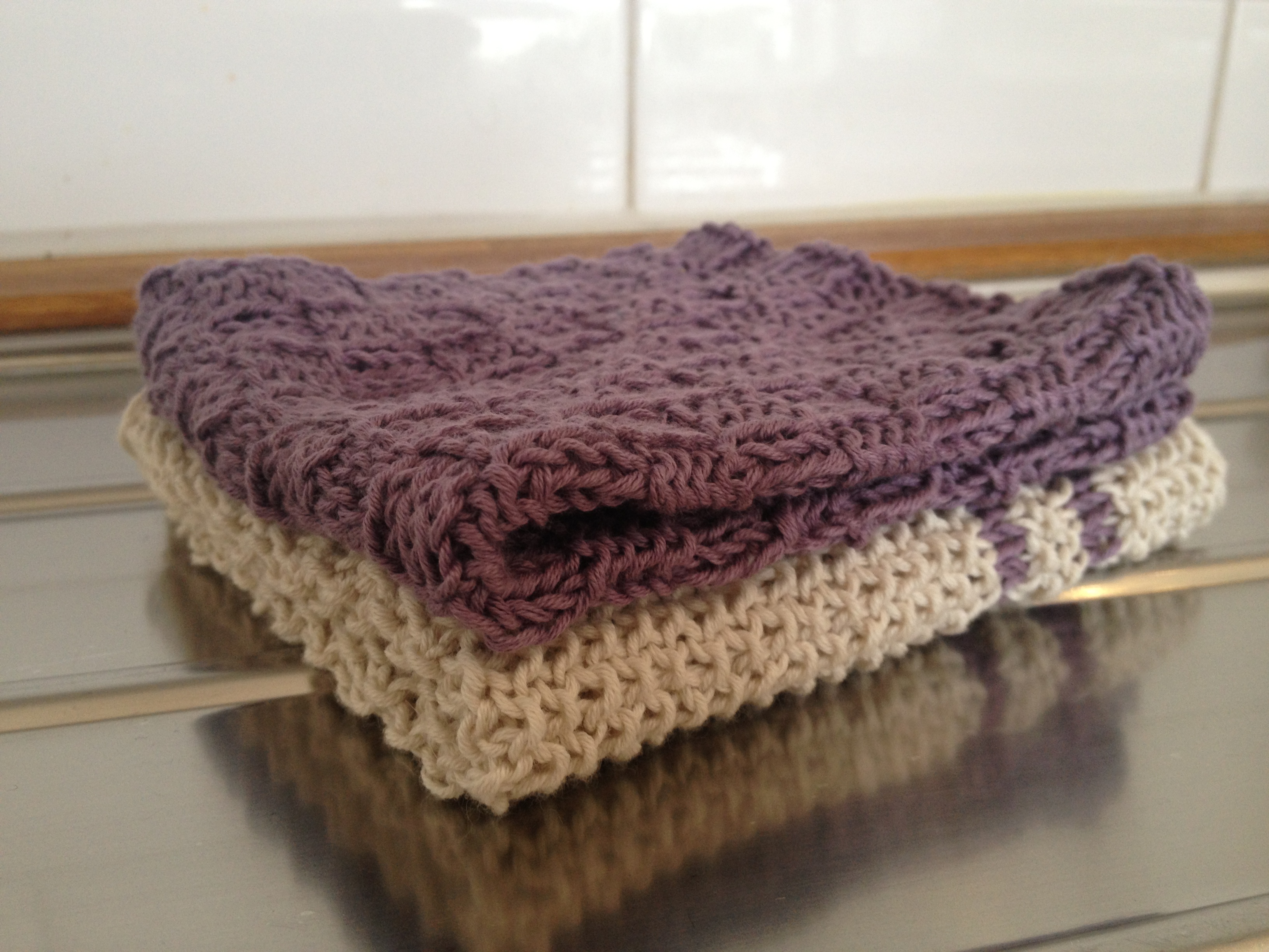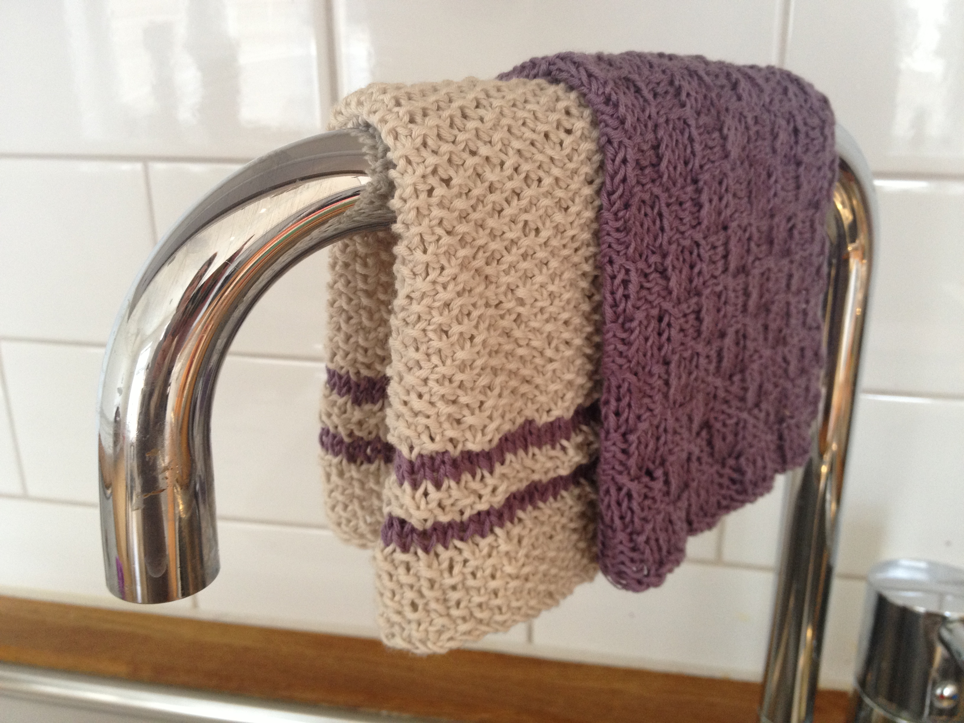 Har strikket meg kjøkkenkluter! De pynter opp på kjøkkenet og er veldig gode å bruke.