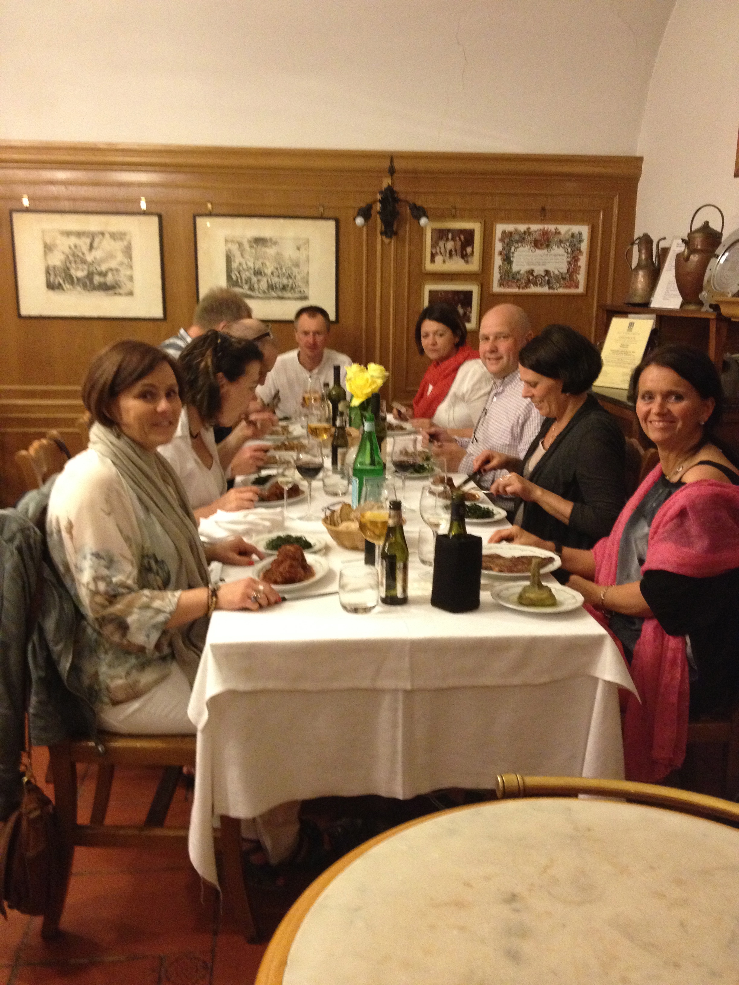 Middag hos Checchino Dal 1887. «When i Rome do as Romans» sa Hellstrøm og vi beit på. Tok ikke sjansen på innmat men oksehale prøvde noen av oss på.