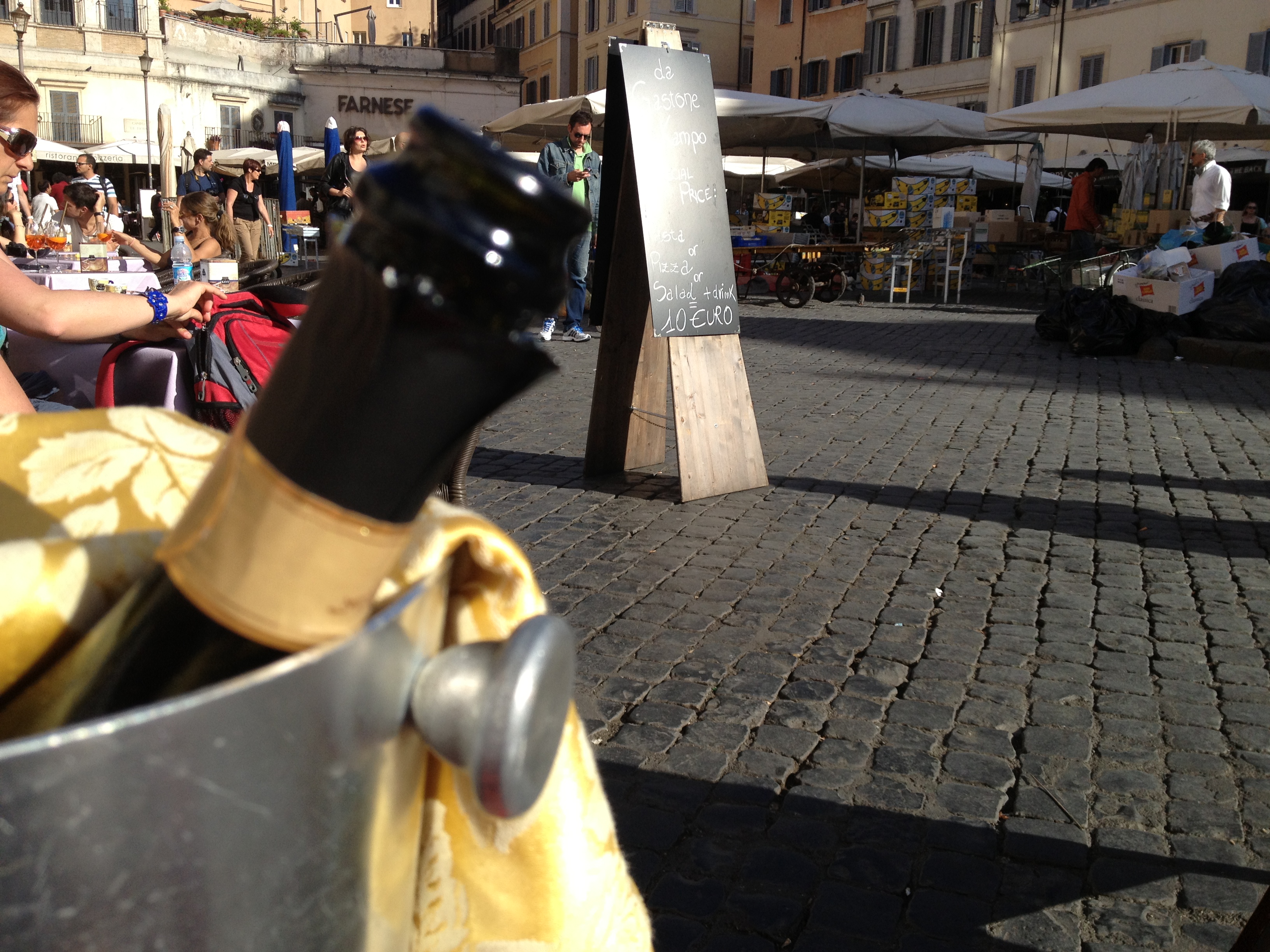 Ble sultne av segwaying. Lunsj i en at smågatene rundt Campo dei Fiori. Tynneste pizza i Roma sies det.