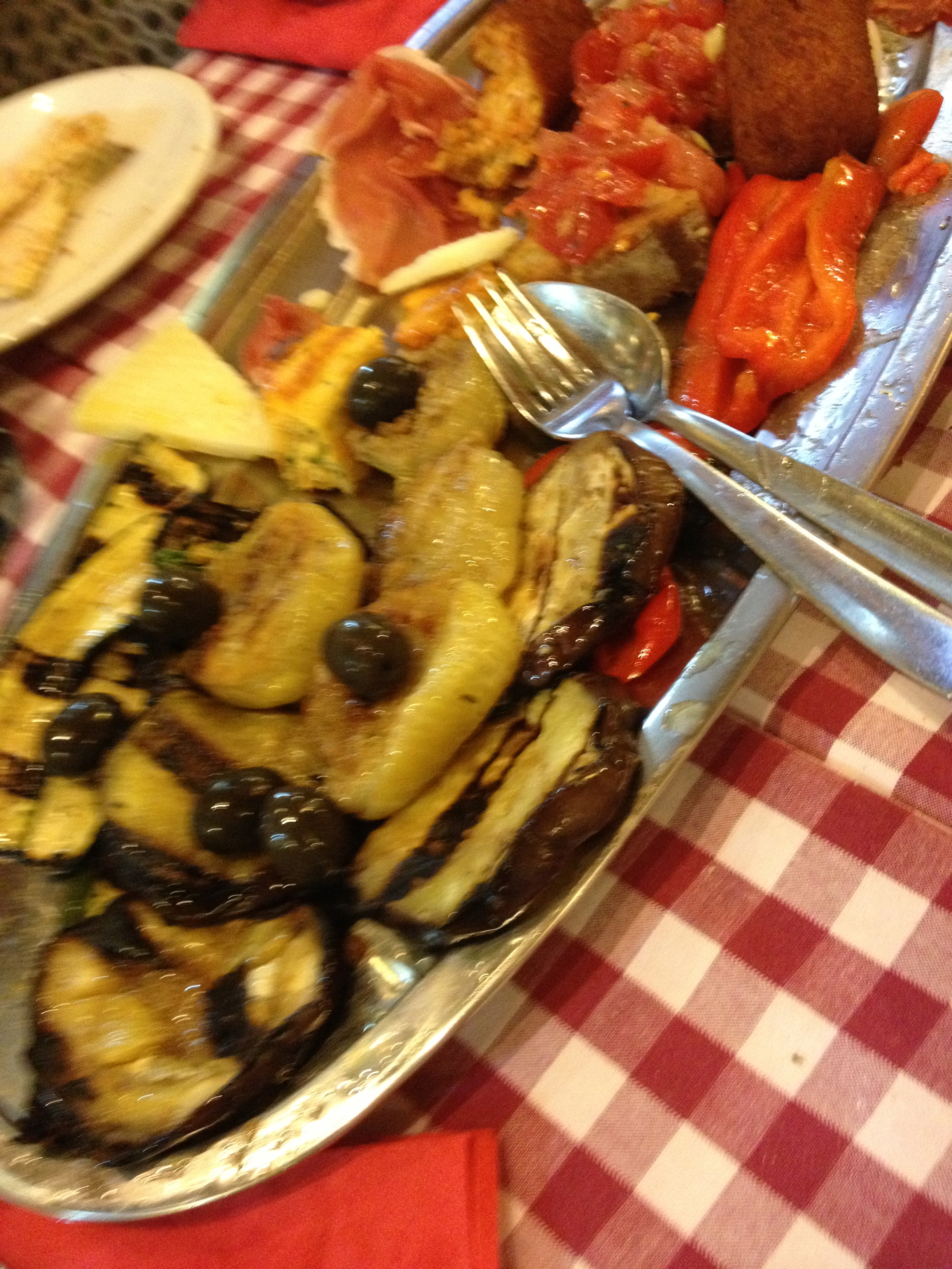 Antipasti siste kvelden. Vanskelig å stoppe slik at det er plass til middagen..