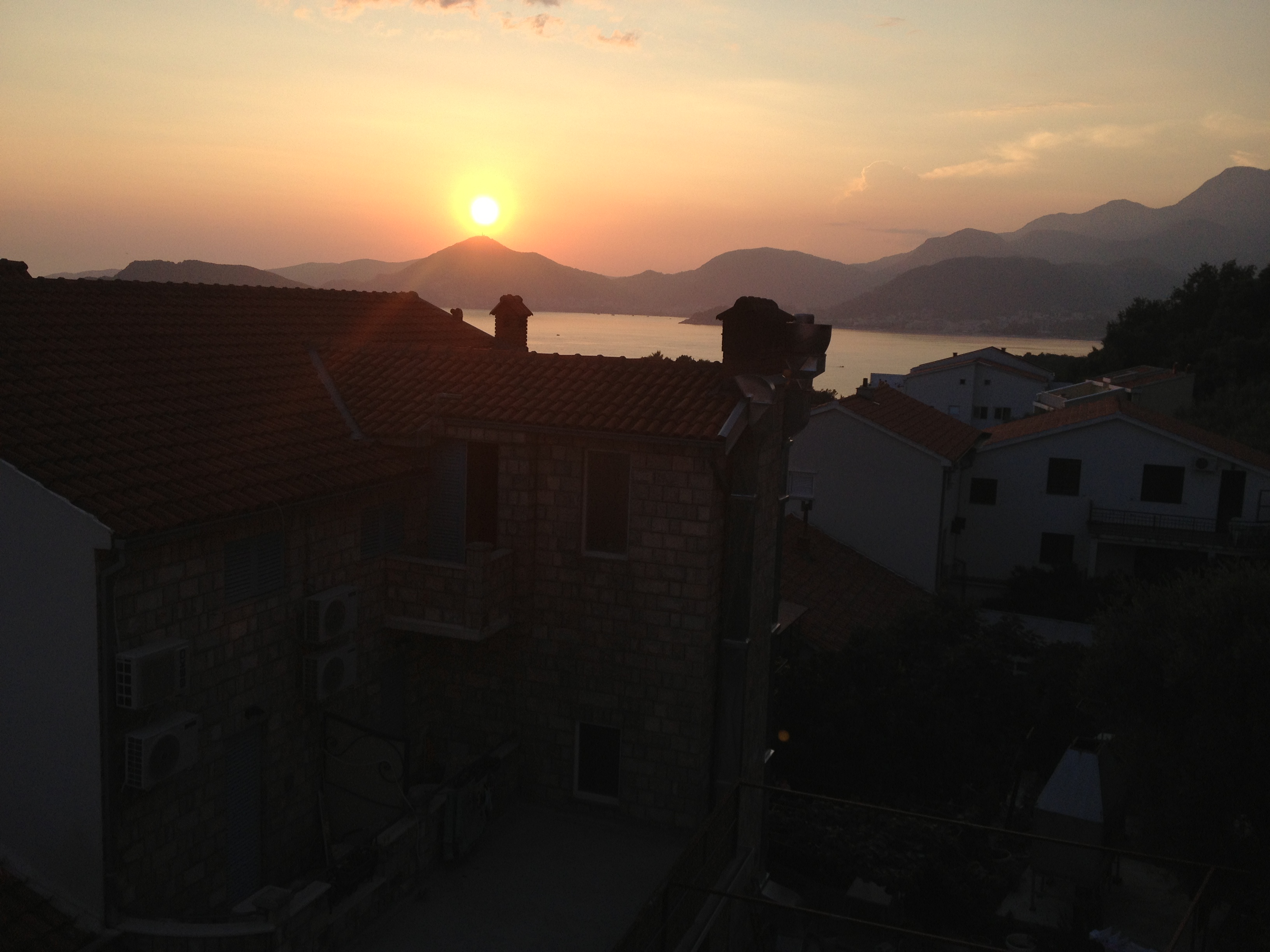 Vel framme i Sveti Stefan ble vi møtt av denne fantastiske utsikten fra Hotel Adrovic. Veldig greit hotell med byens beste utsikt! Morgen som kveld!