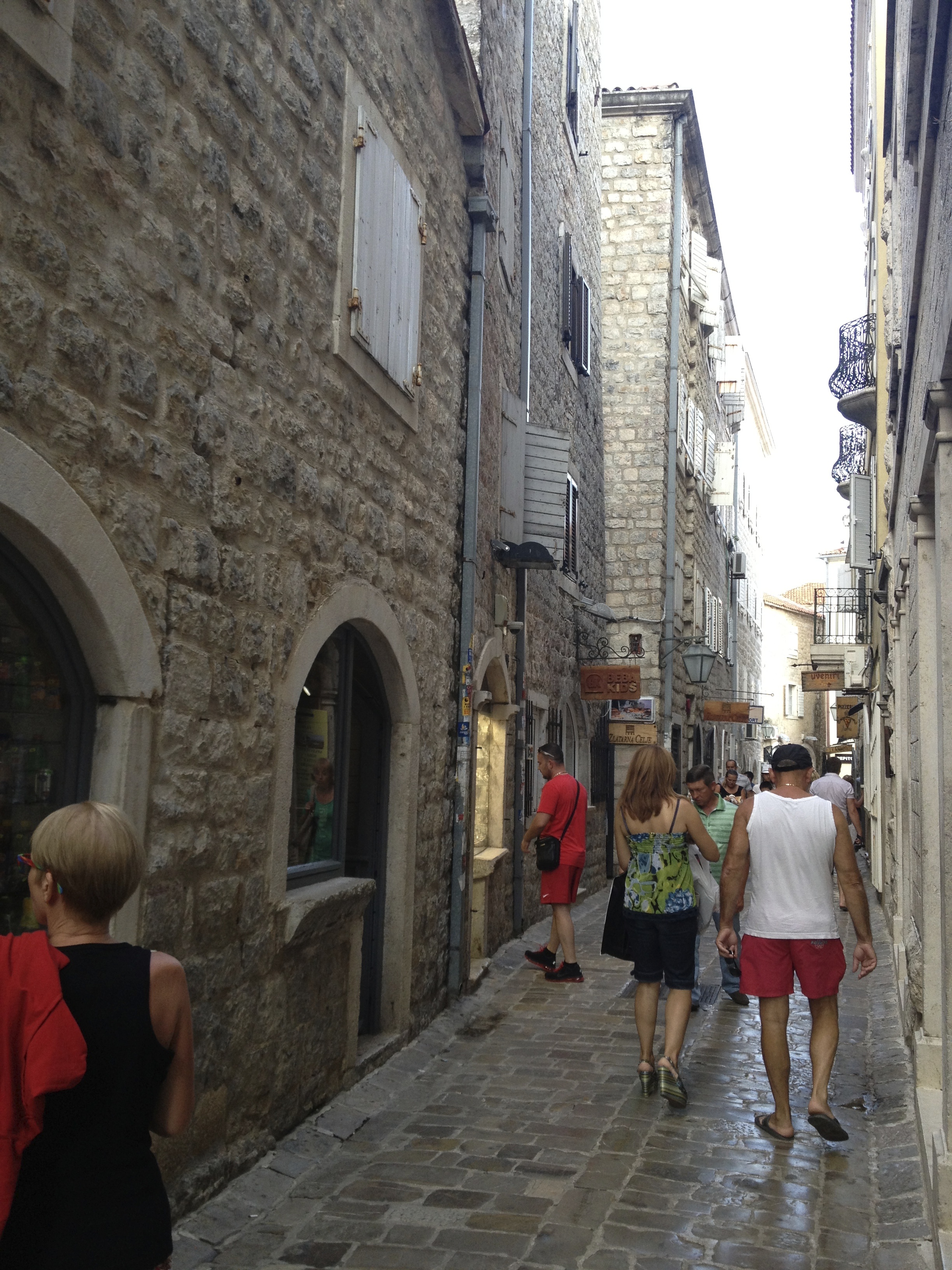 Ettermiddagstur til gamlebyen i Budva. Pål shopper så damene nesten dåner. Blant annet ny ørepynt som må i øret med det samme.