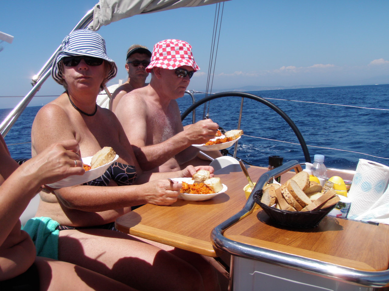 Etter en god frokost tok vi taxi til Mariana Kastela for å mønstre på Luka, en Hanse 415.