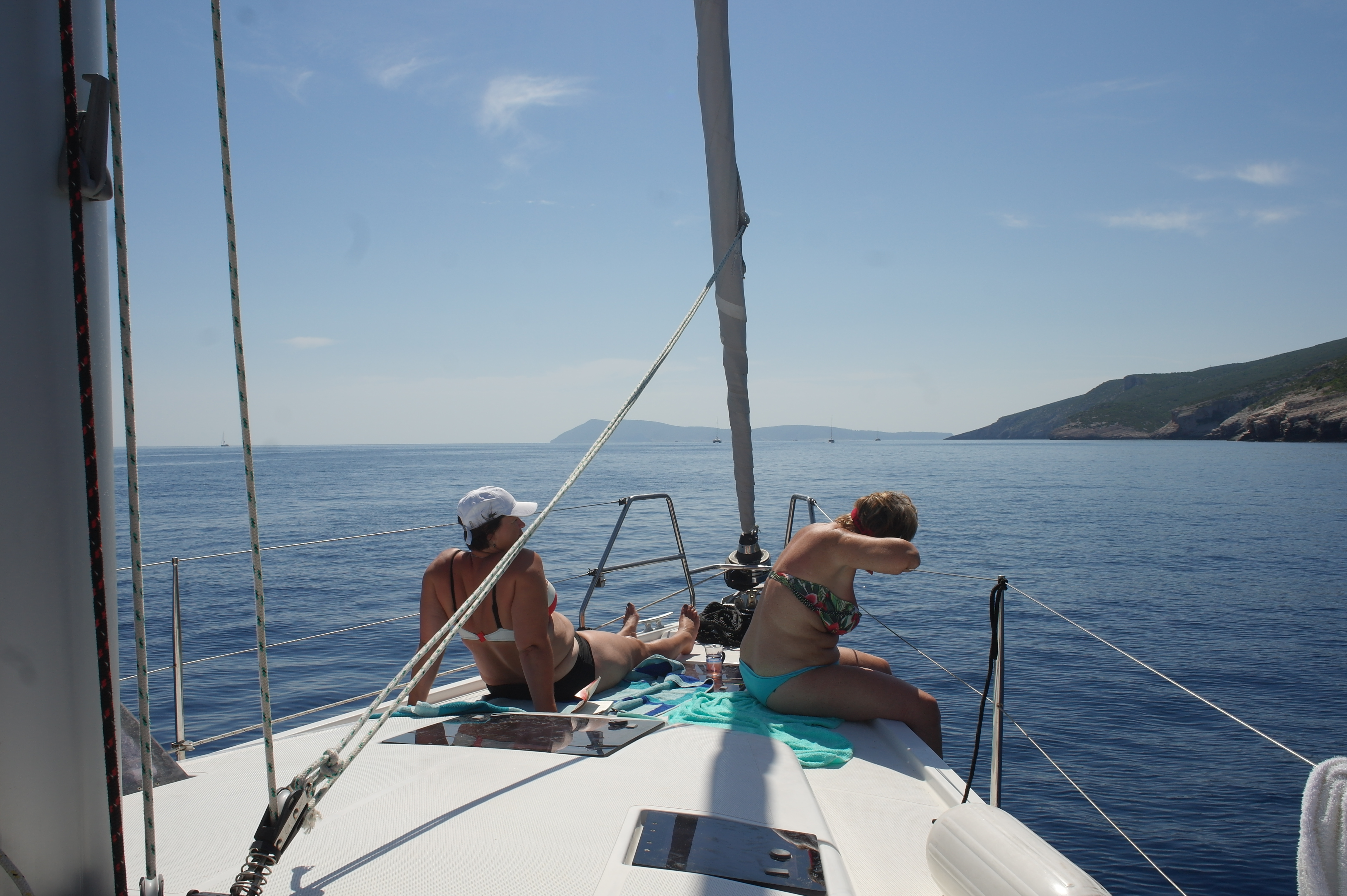 Dagens seiltur går opp langs kysten og ender opp på marinaen i havnebyen Rogoznica. Først morgentur og et bad.