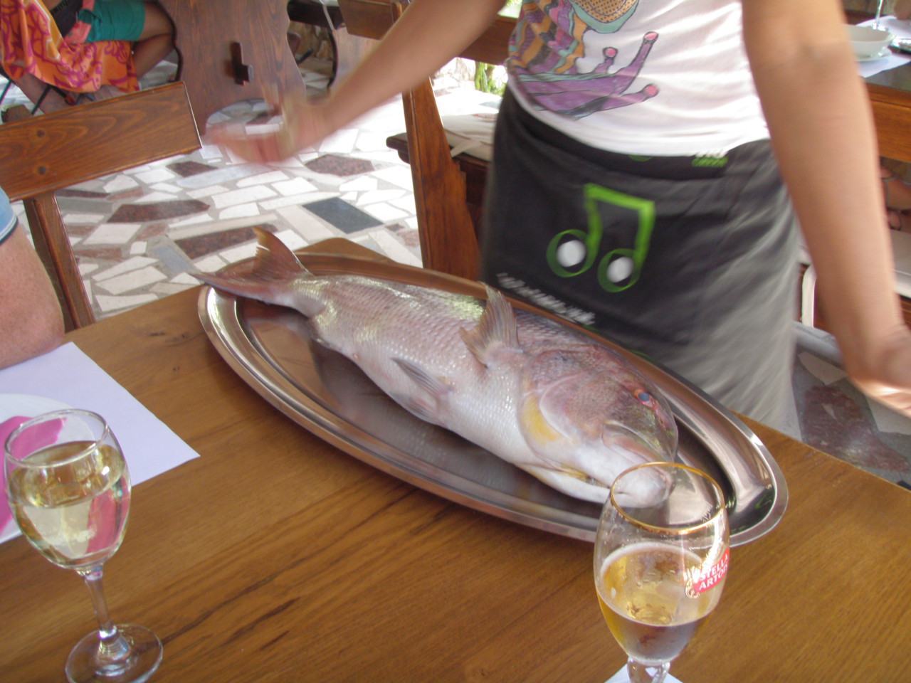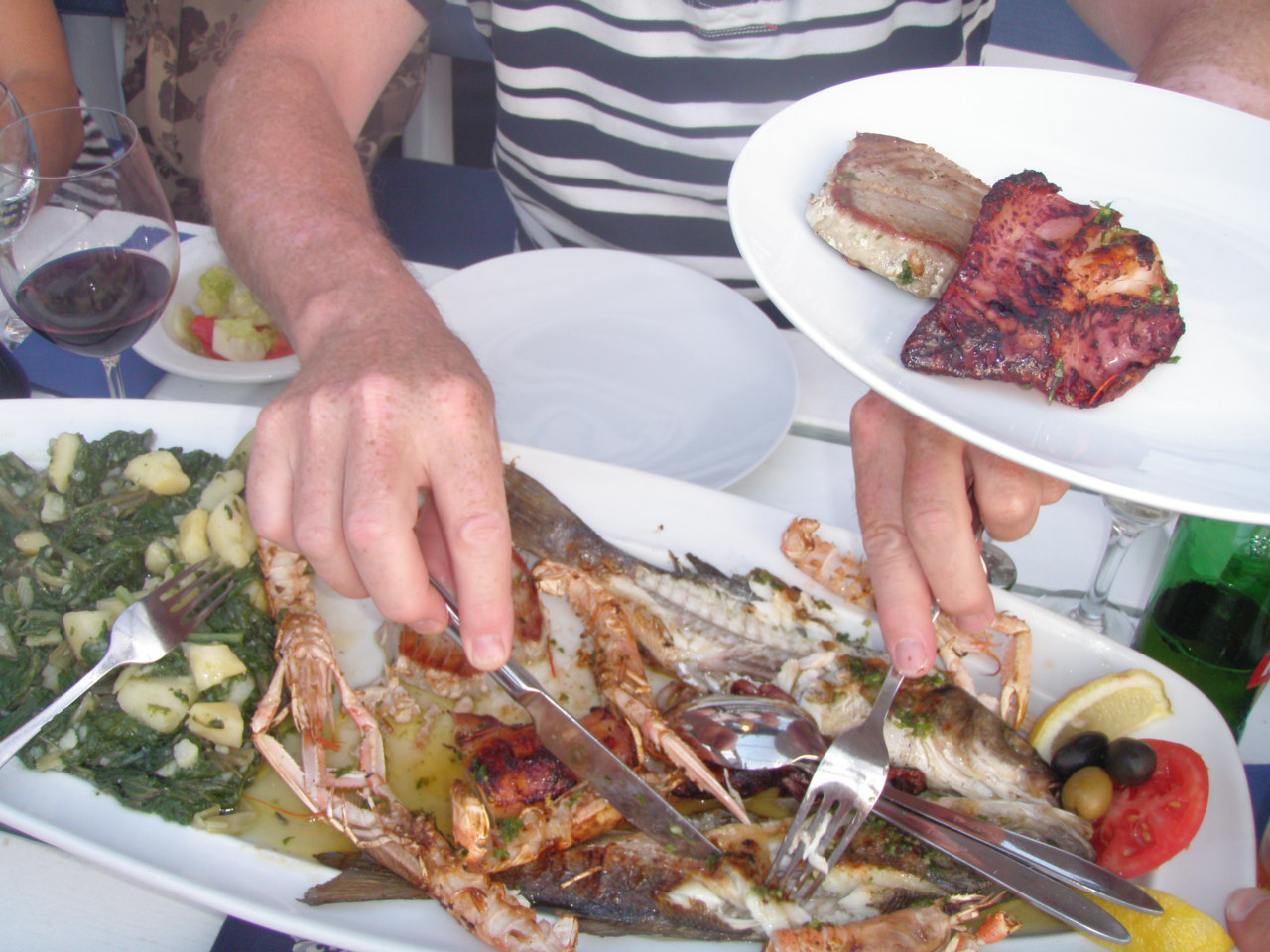 Vi tar dingien inn til land og spiser en fantastisk lunsj.