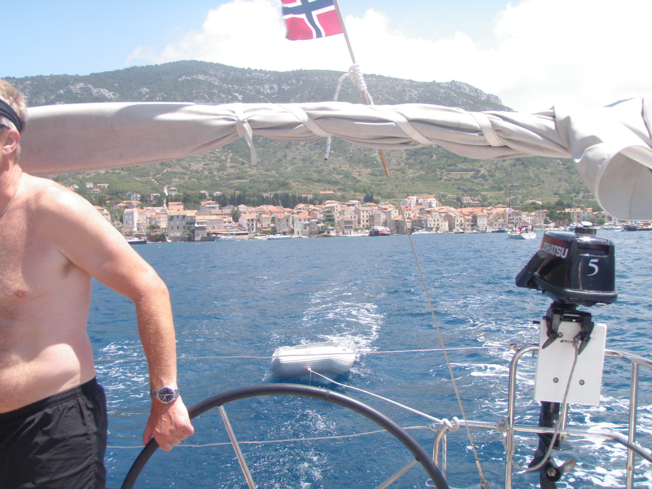 Dagens seilrute gikk fra Solta til Vis, gjennom stredet mellom Vis og Brac og ente opp i byen Vis. Fin seilvind etter at vi hadde passert Brac.