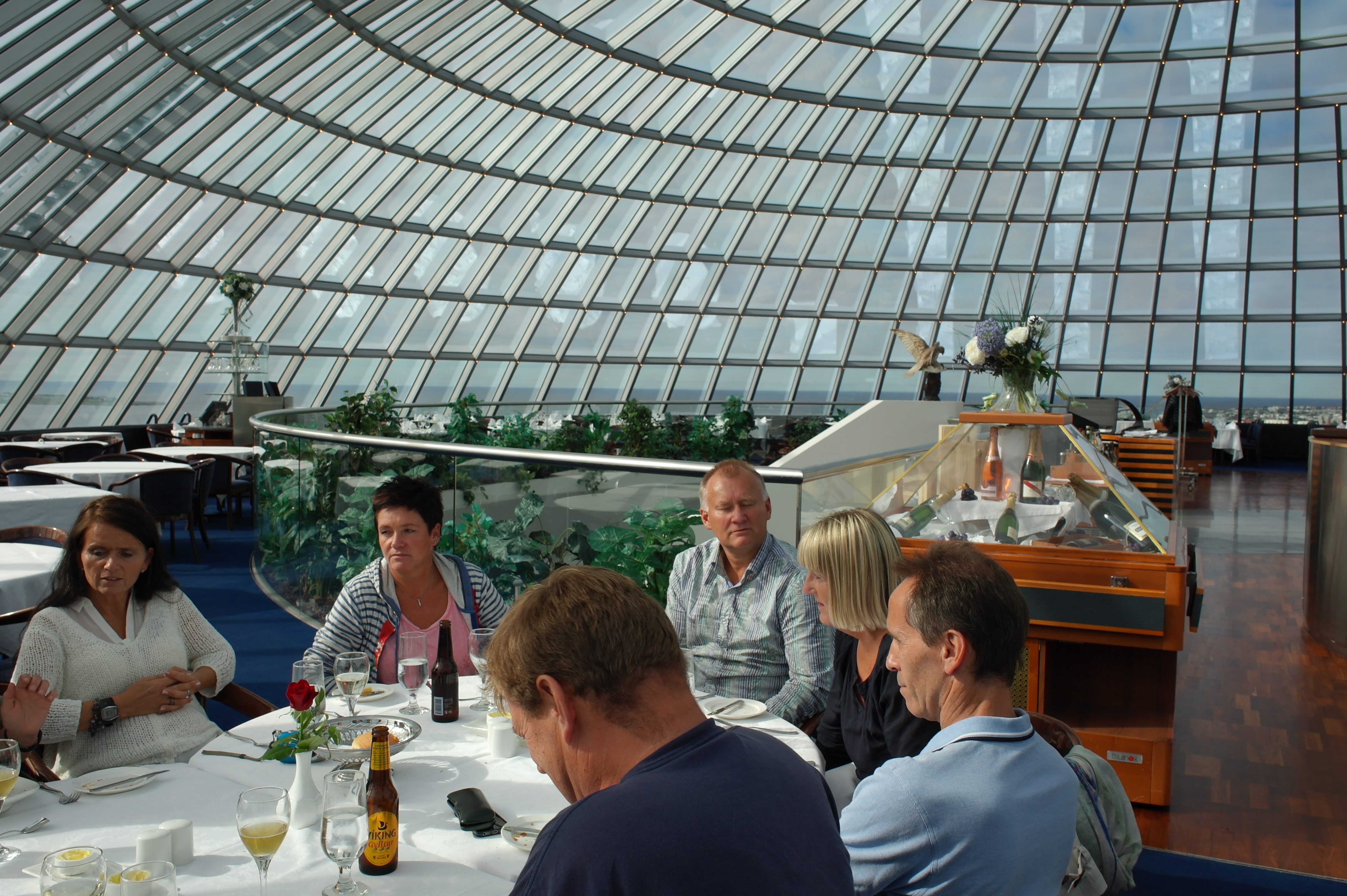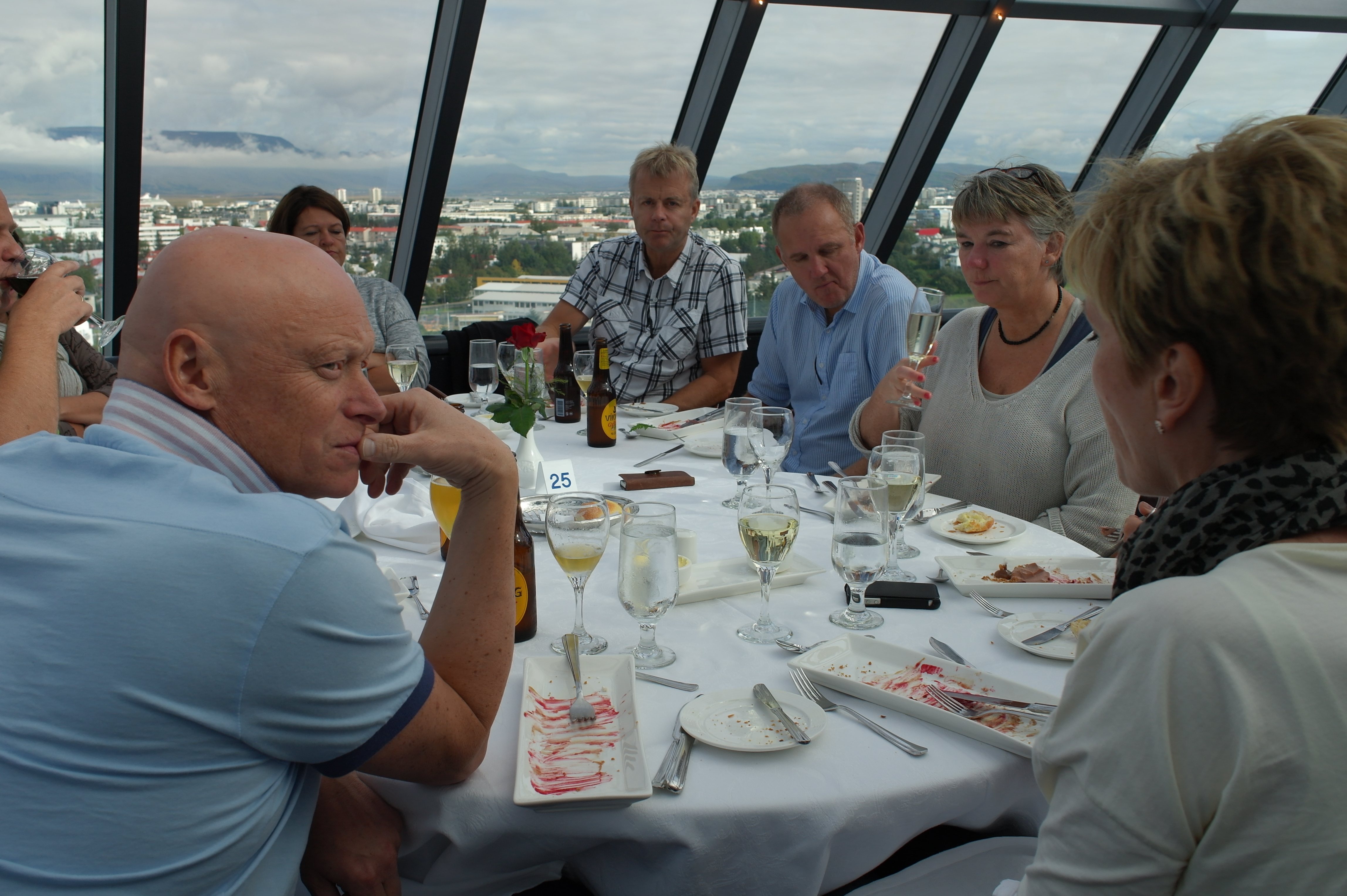 På tide med lunsj, vi har bestilt bord på den flotte restauranten Perlan. Gulvet på restauranten roterer slik at vi i løpet av måltidet har fått med 360 graders utsikt over Reykjavik og omegn.