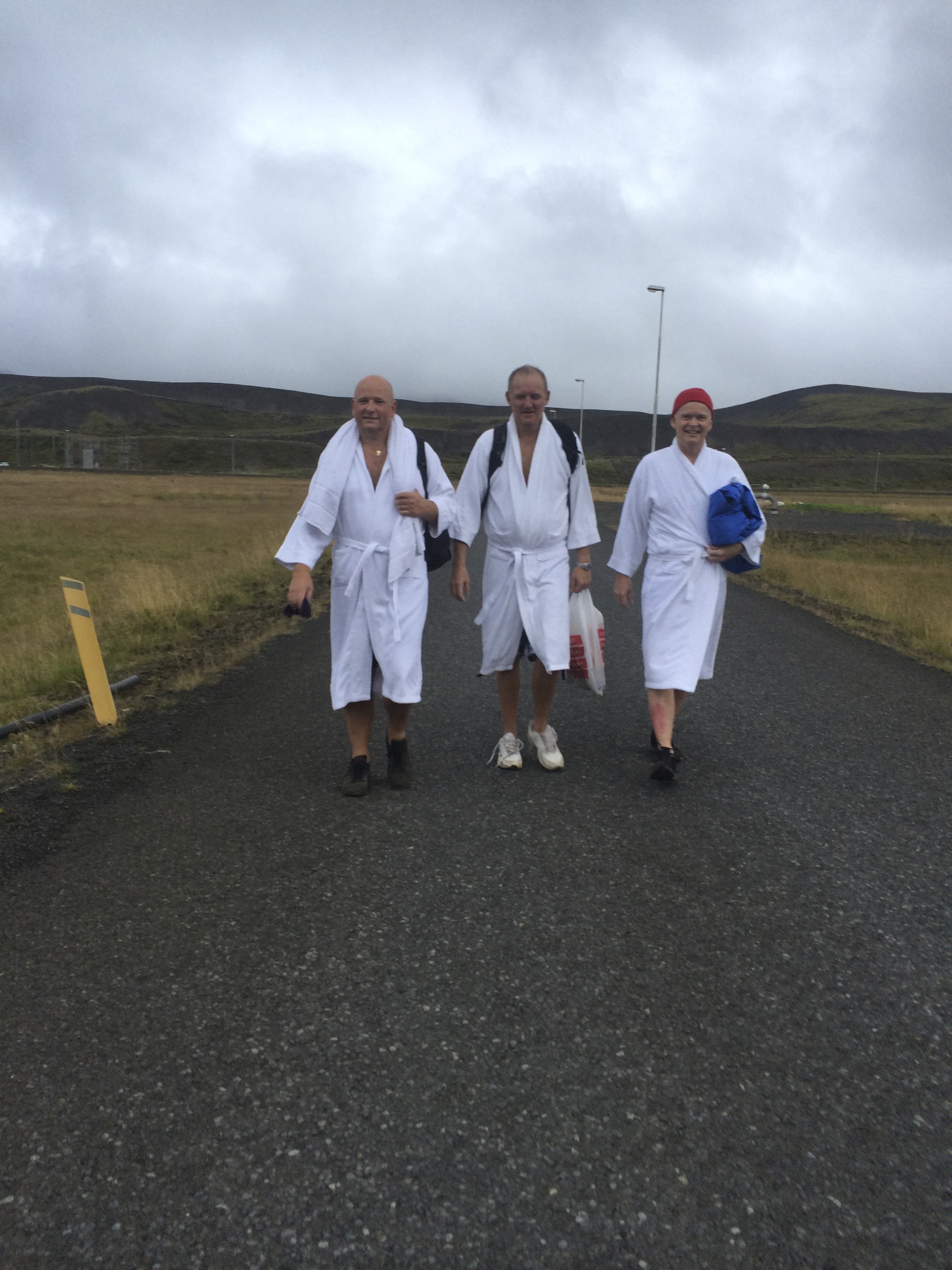 Disse glade herrene traff vi på veien, ferdig badet.