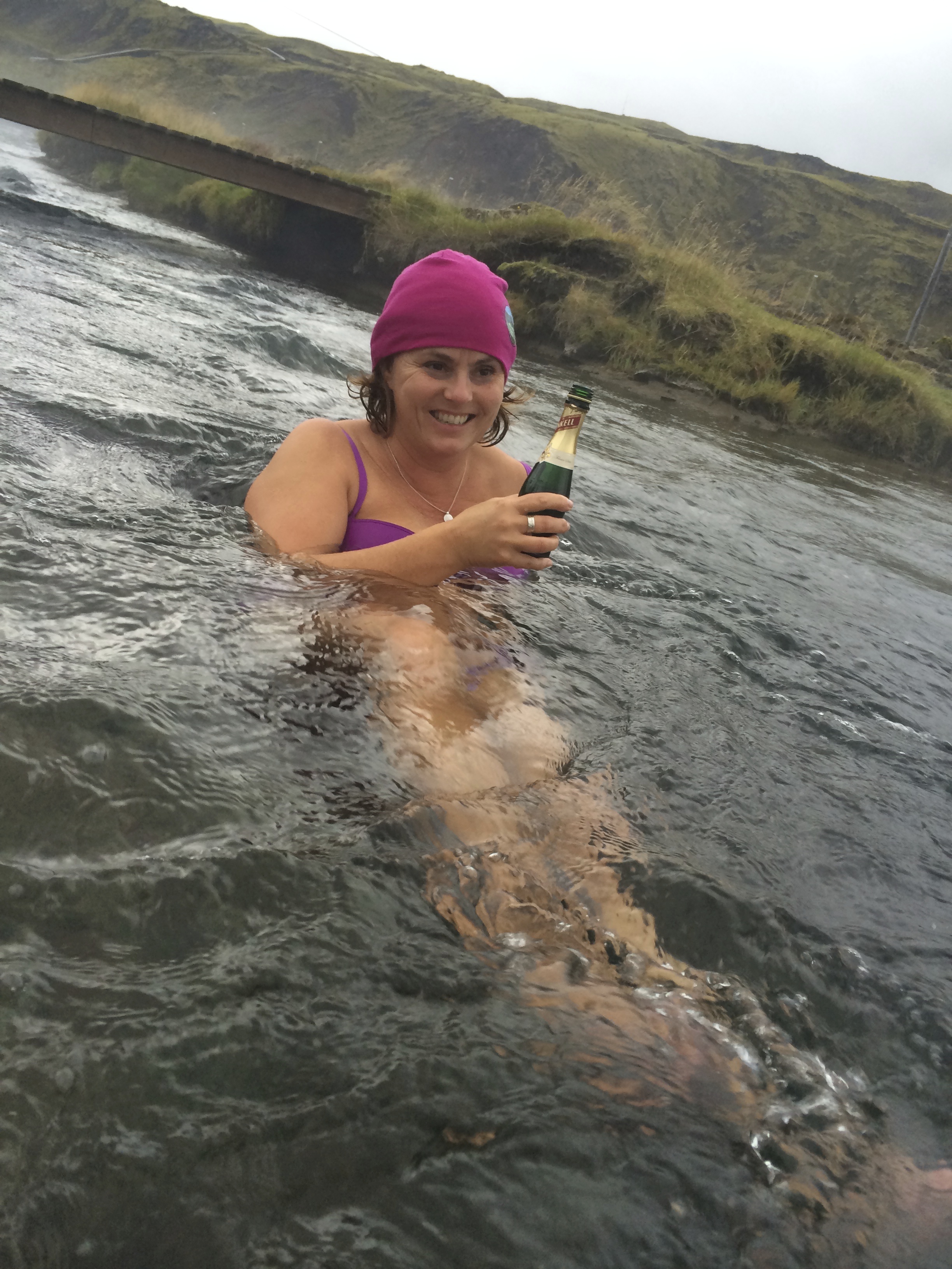 Tilbake til hotellet og på vei til bekken for å bade i langt varmere vann, 38 grader.
