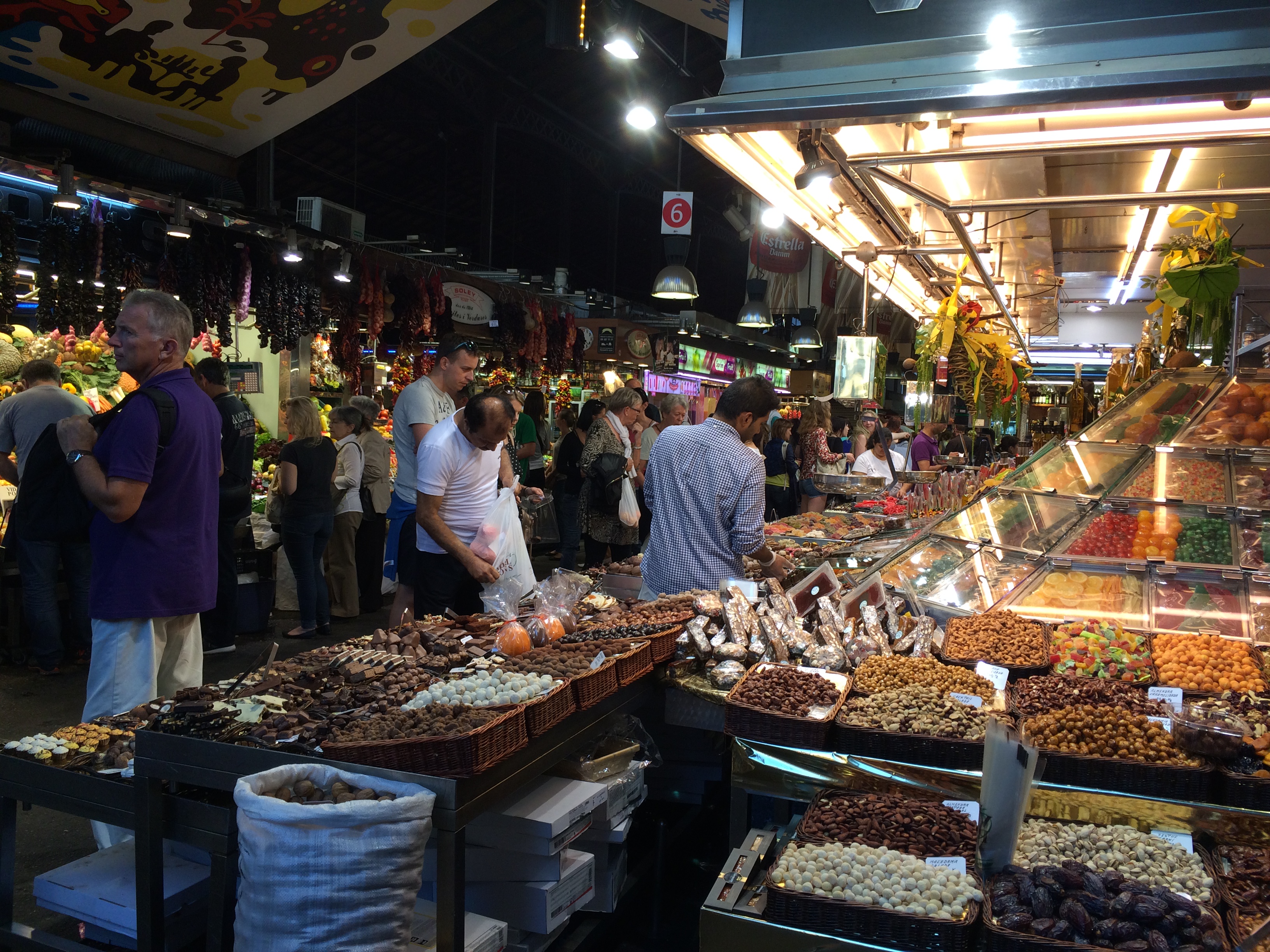 Innom Mercat de Sant Josep de la Boqueria. Mye fristende som ikke er så lett å få med hjem.