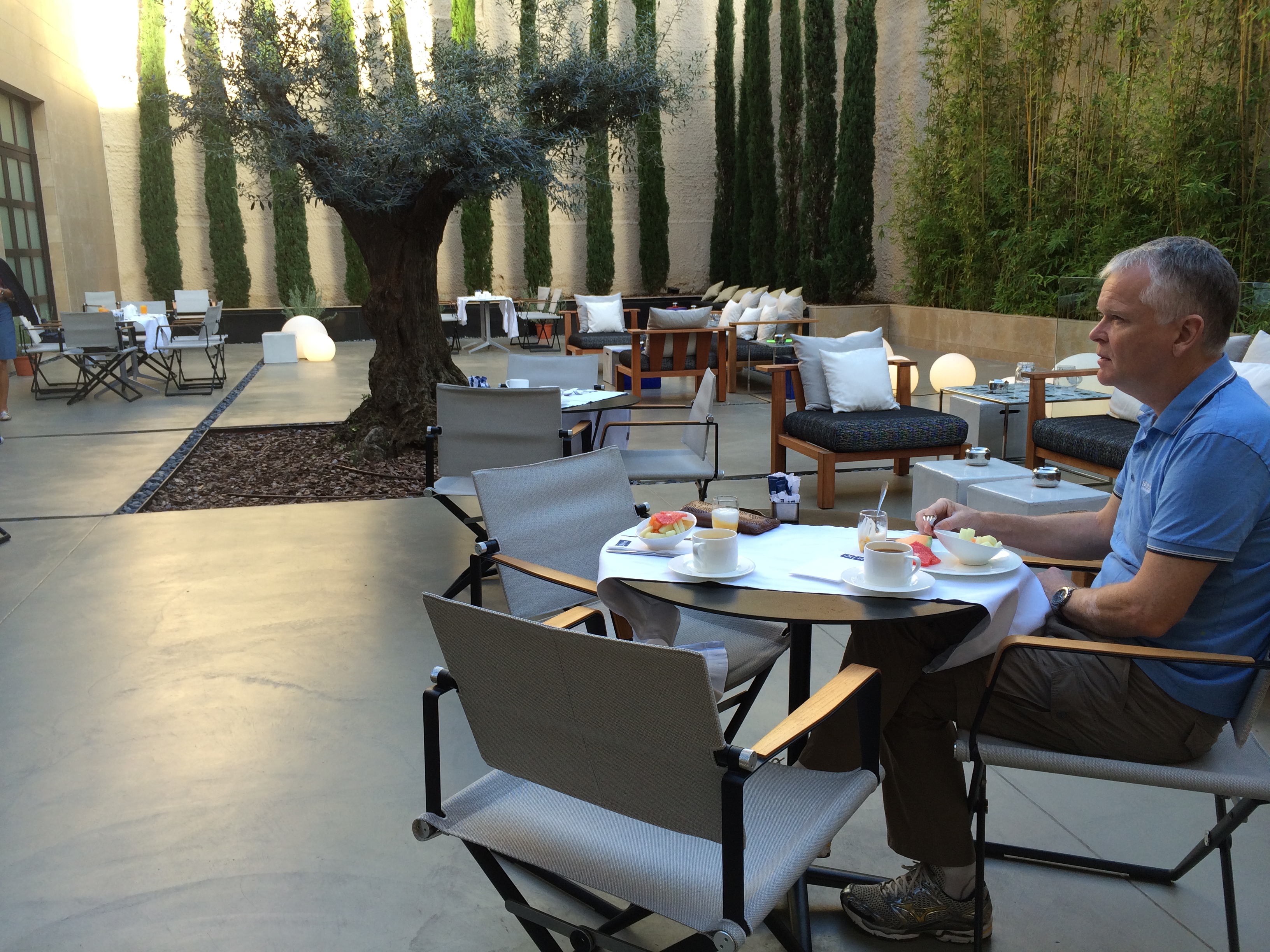 En drink i bakhagen på hotellet. Vi bodde på H10 Art Gallery, et fint og hyggelig hotell.