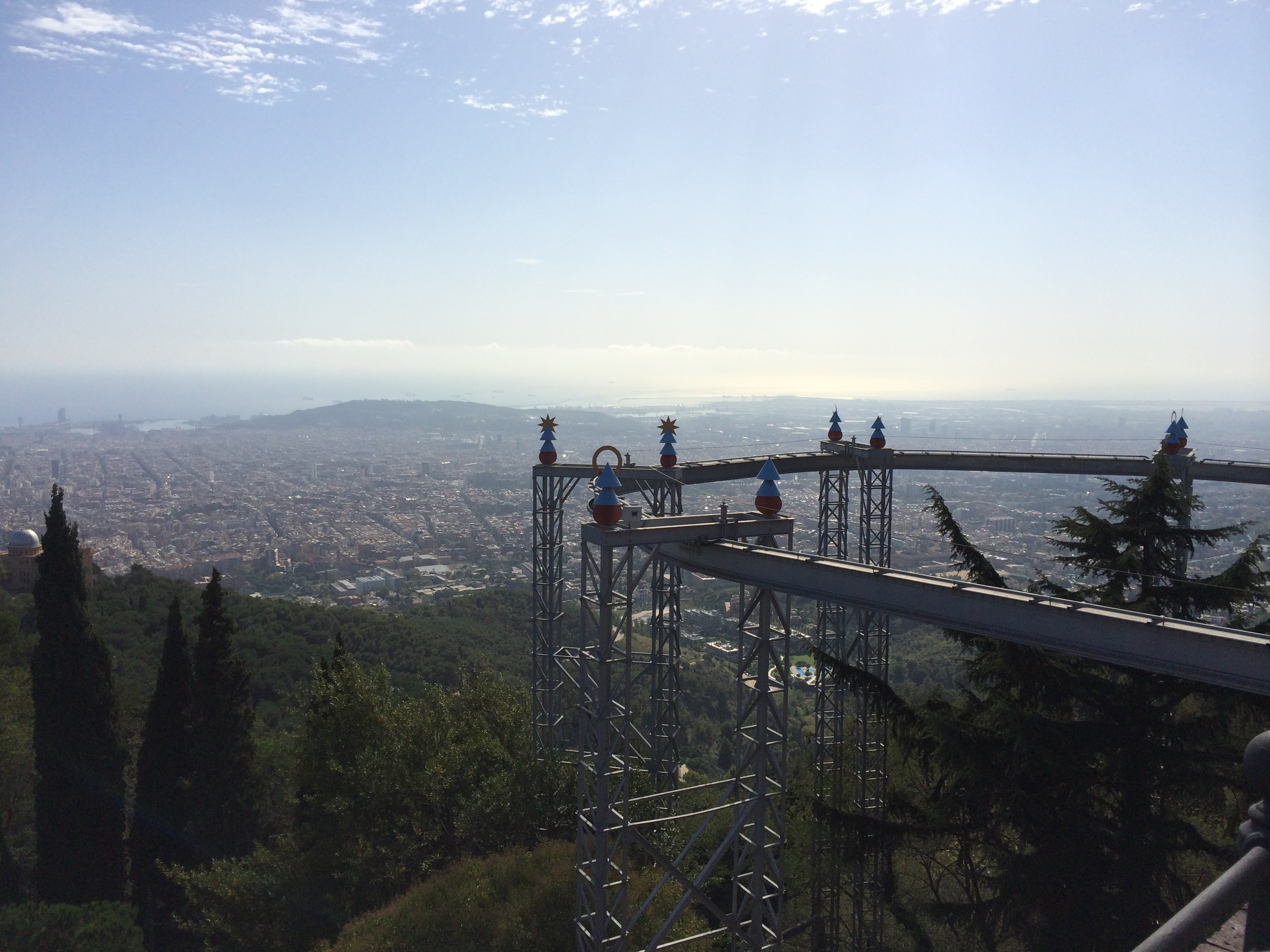 Dagstur til Tibidabo fornøyelsespark. En fjelltopp på 512 meter hvor en har en fantastisk utsikt over hele Barcelona. Transporten opp med trikken Tramvia Blau er en stor del av opplevelsen, videre går det taubane helt til toppen. Taubanen var ikke begynt å gå når vi kom opp så vi valgte å gå til toppen, det tok en times tid.