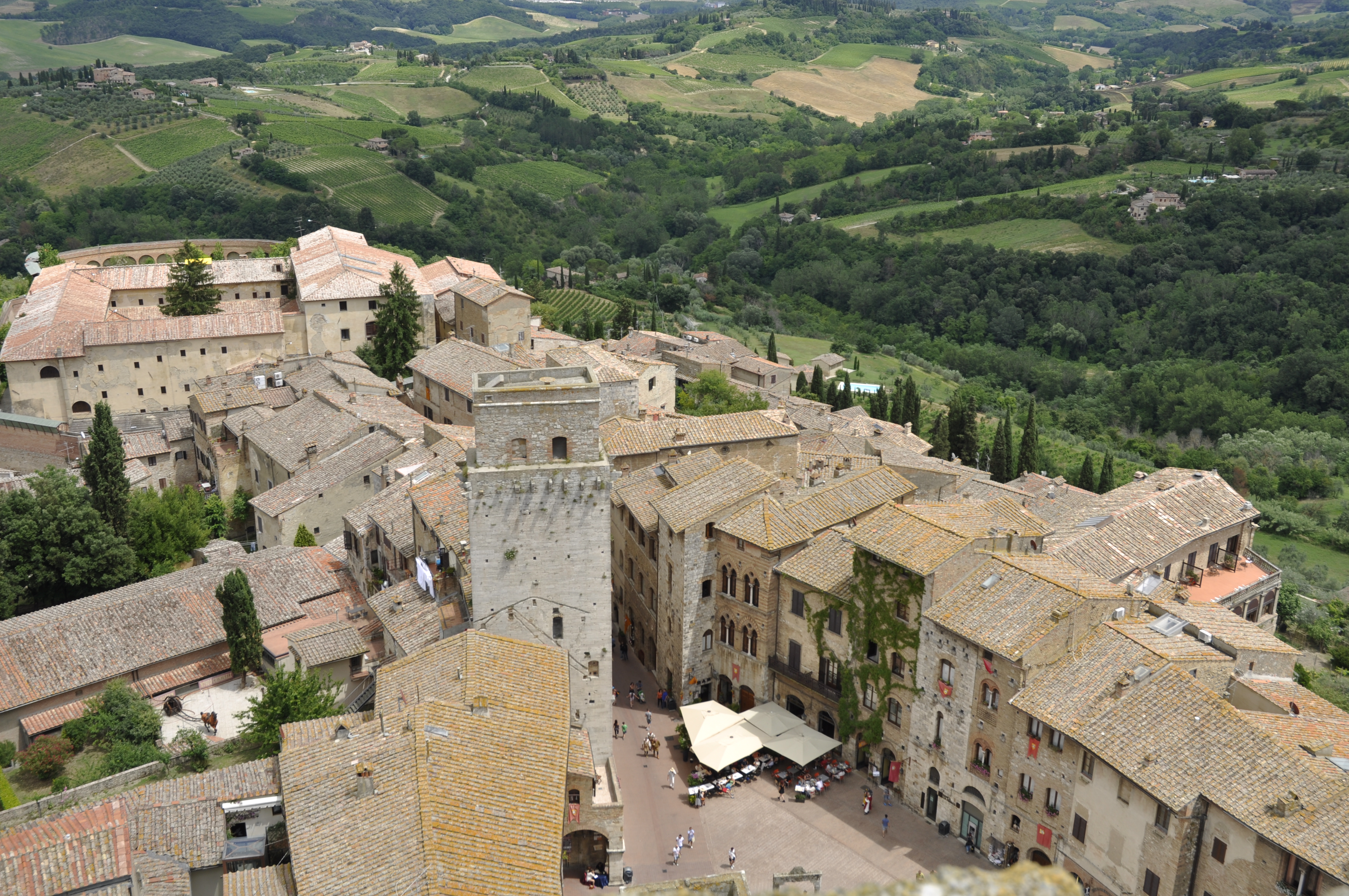 Søndag var en gjeng med på busstur til de flotte byene San Gimignano og Certaldo. Første stopp San Gimignano.