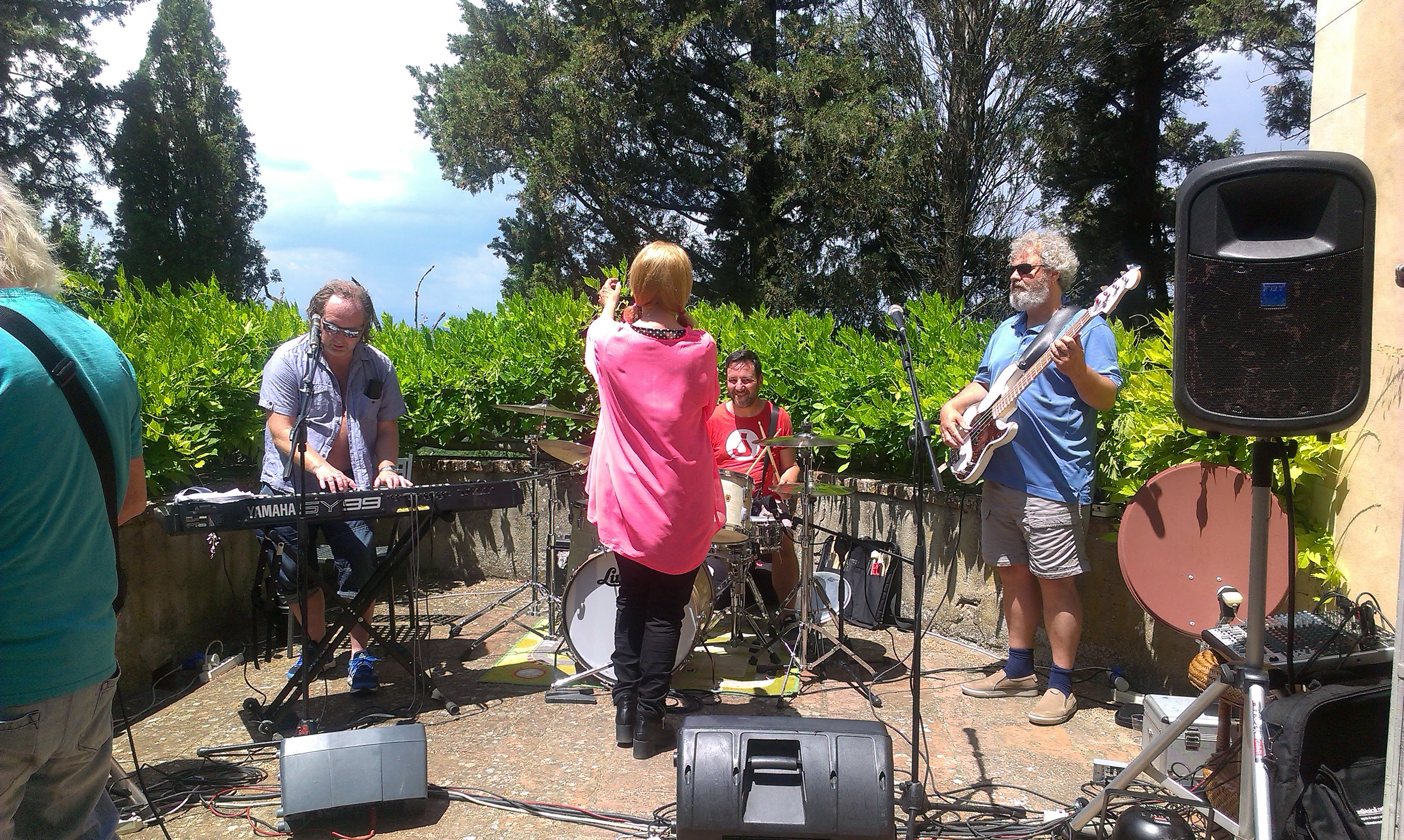 Litt dansing før middag. Bandet ledet av Jorunn var satt sammen for anledningen. Den lokale trommisen ‘Super’ Mario fant fort tonen med de importerte musikerne. Det svingte til langt på natt!