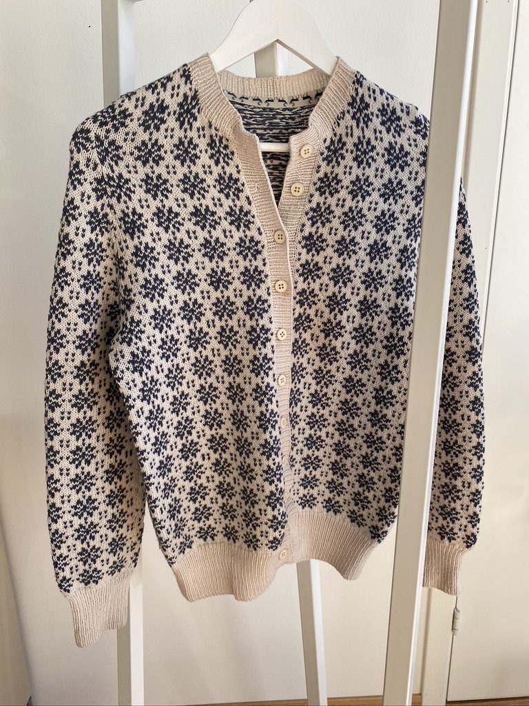 Fant denne nydelige jakken i Sandnes Garns hefte Tema 46 Ikoner Voksne. Det er første gang jeg strikker i garnet Tynn Merinoull, garnet er veldig godt å strikke i og blir veldig fint! 😊