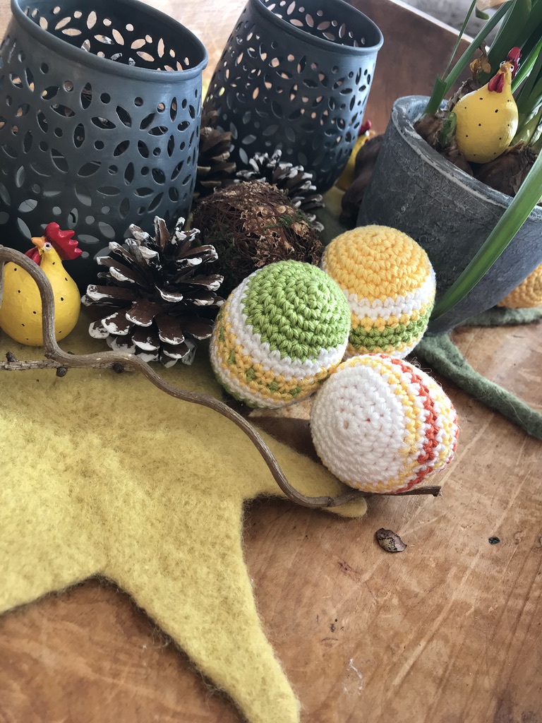 Kjekt å lage ny påskepynt til hytta. Påskekyllinger og egg i friske farger.