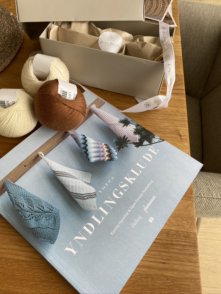 Garn og bok kom på døra i fine pakke med silkebånd på. 🙂