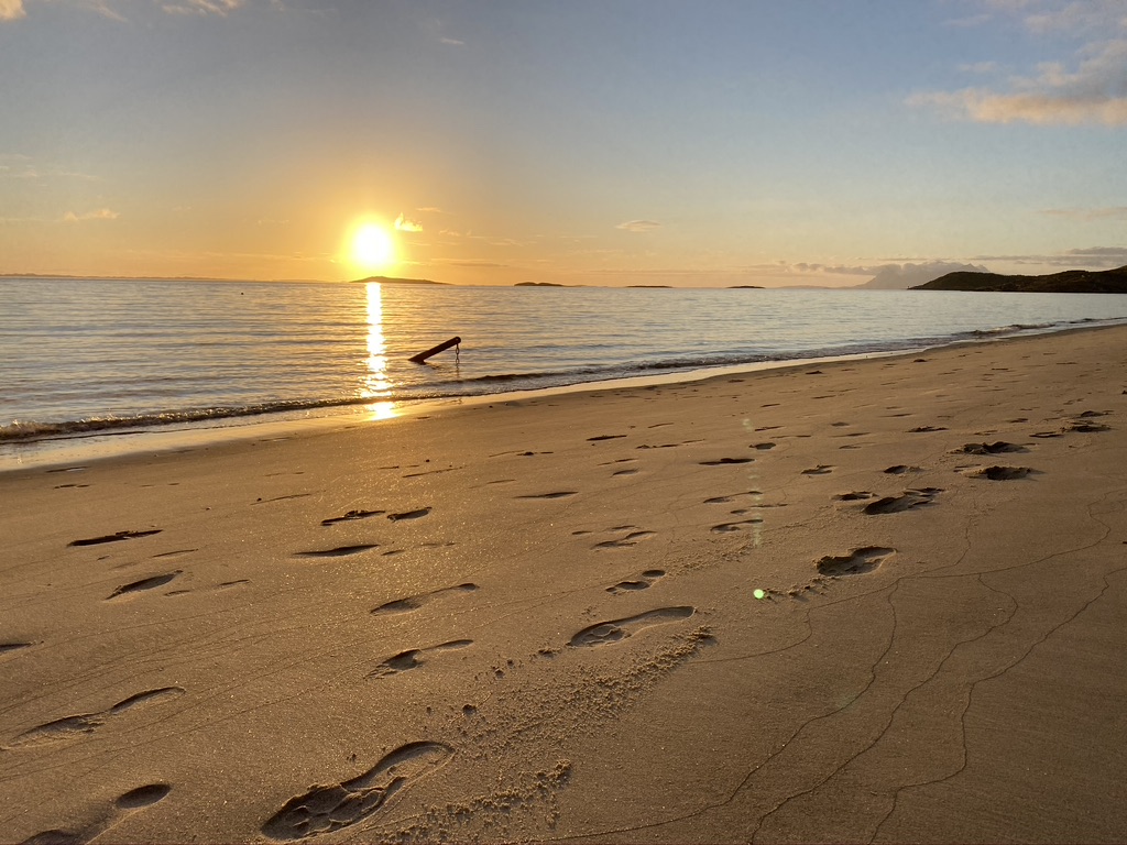 Kveldstur langs den flotte stranda i solnedgang. Helt nydelig!