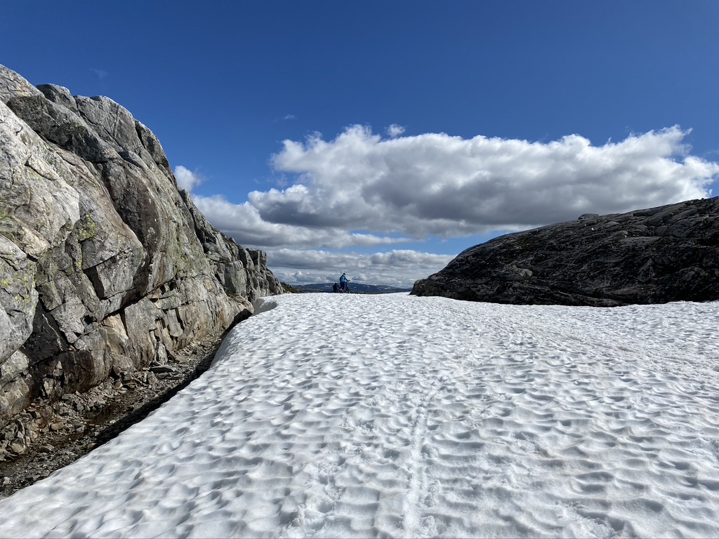 Dette er noe vi har snakket lenge om å gjøre og nå bød anledningen seg. 😊 Vi kjørte fra hytta og inn til Blåsjø og Oddatjørndammen, målet var å sykle til Storevassdammen. Men vi ble stoppet av snøen et lite stykke før dammen.
