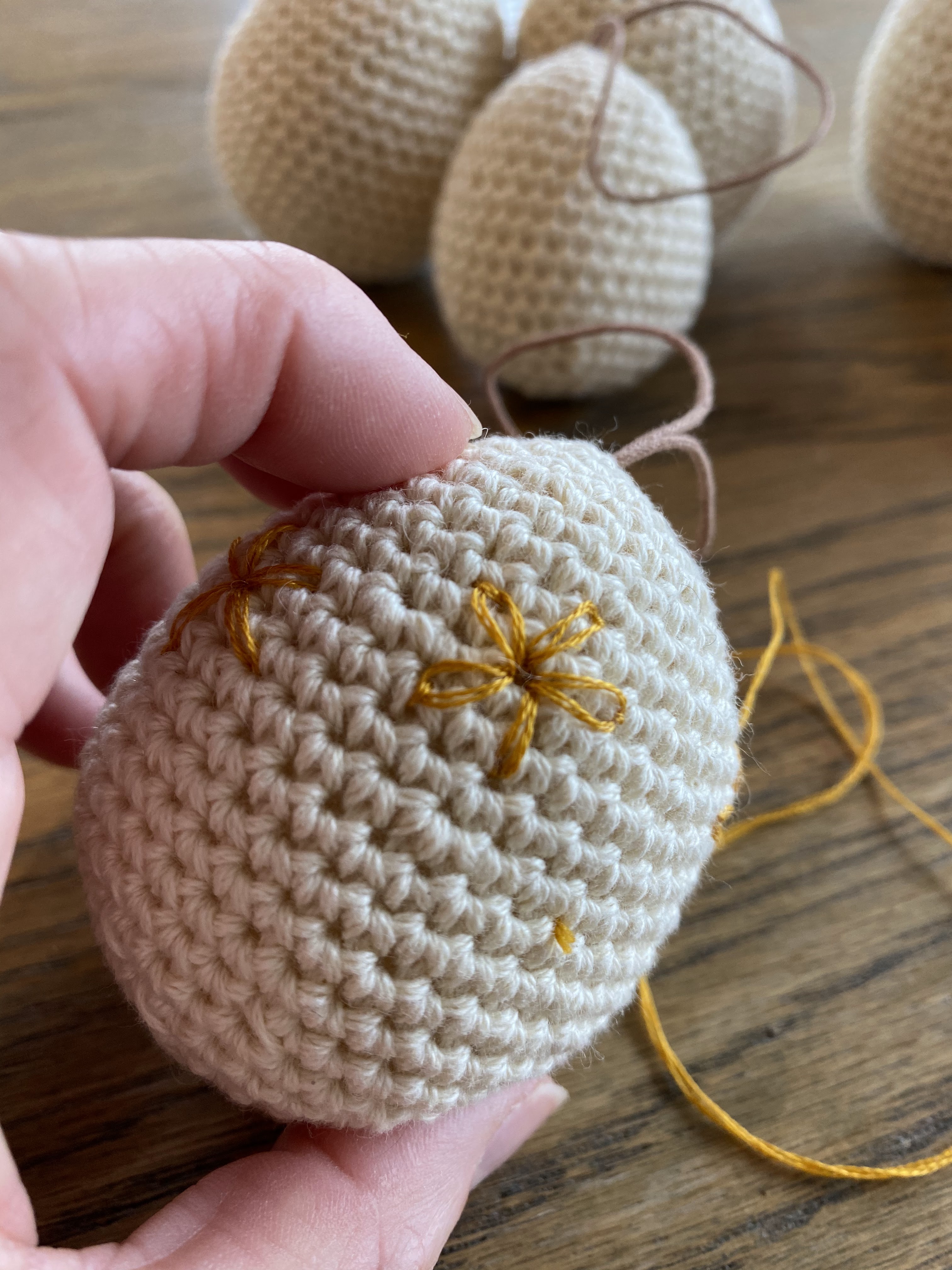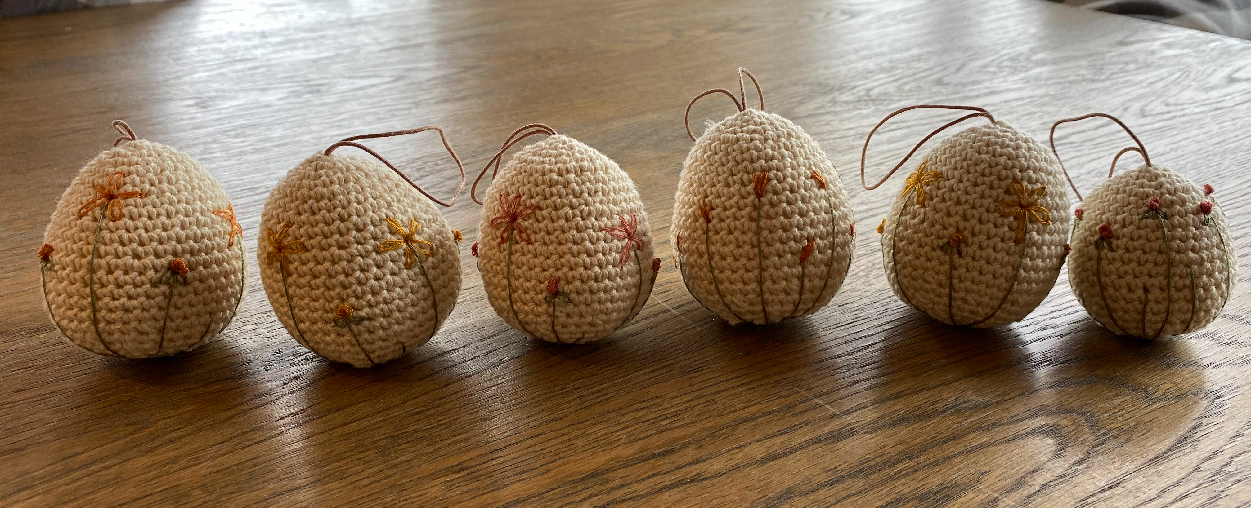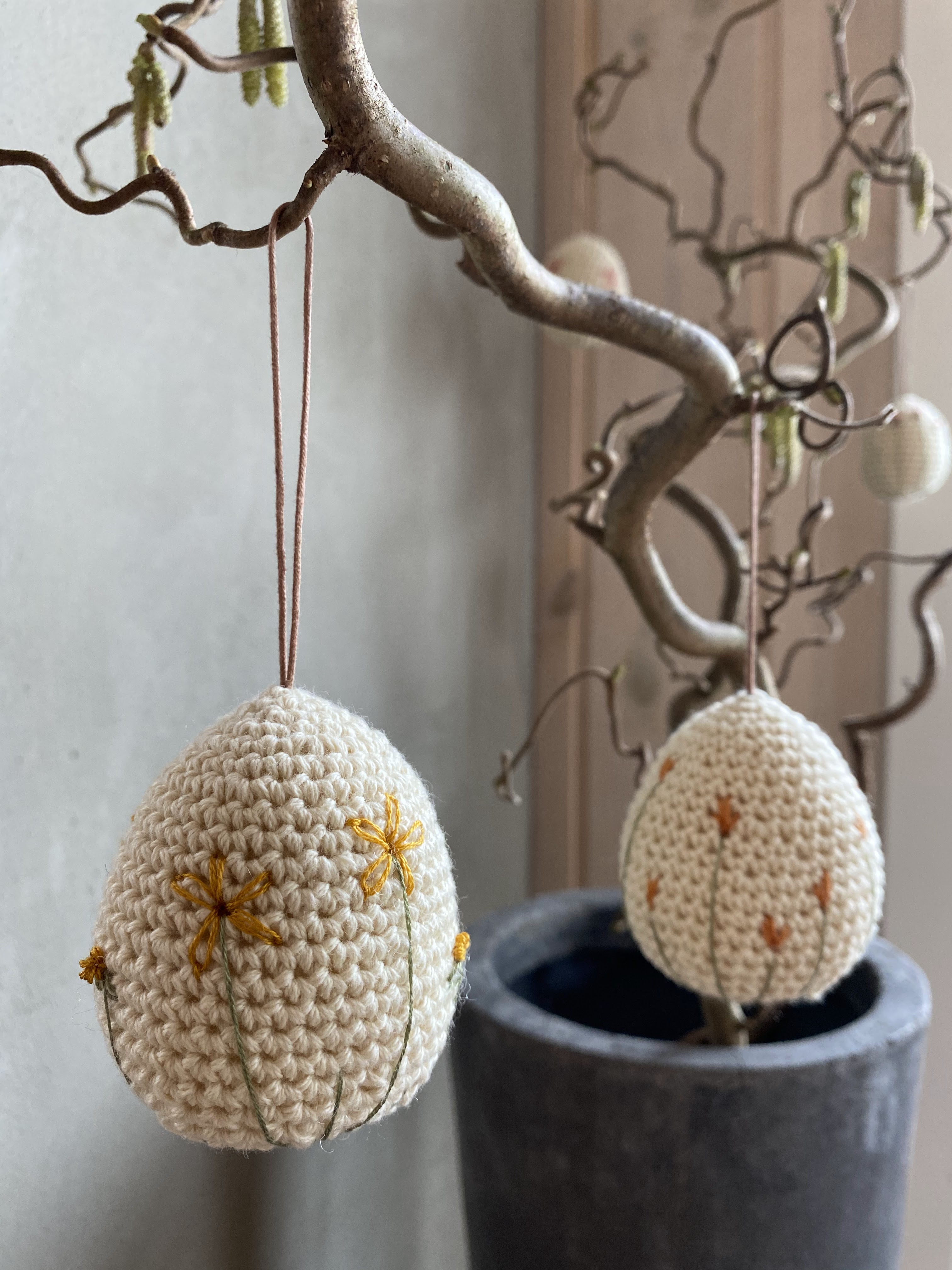 Oppskriften på påskeeggene er fra Krea Deluxe. Jeg har valgt å bruke broderigarn (Moulinegarn) til blomstene som er brodert på eggene. Jeg syns det blir finere med tynt og blankt garn.