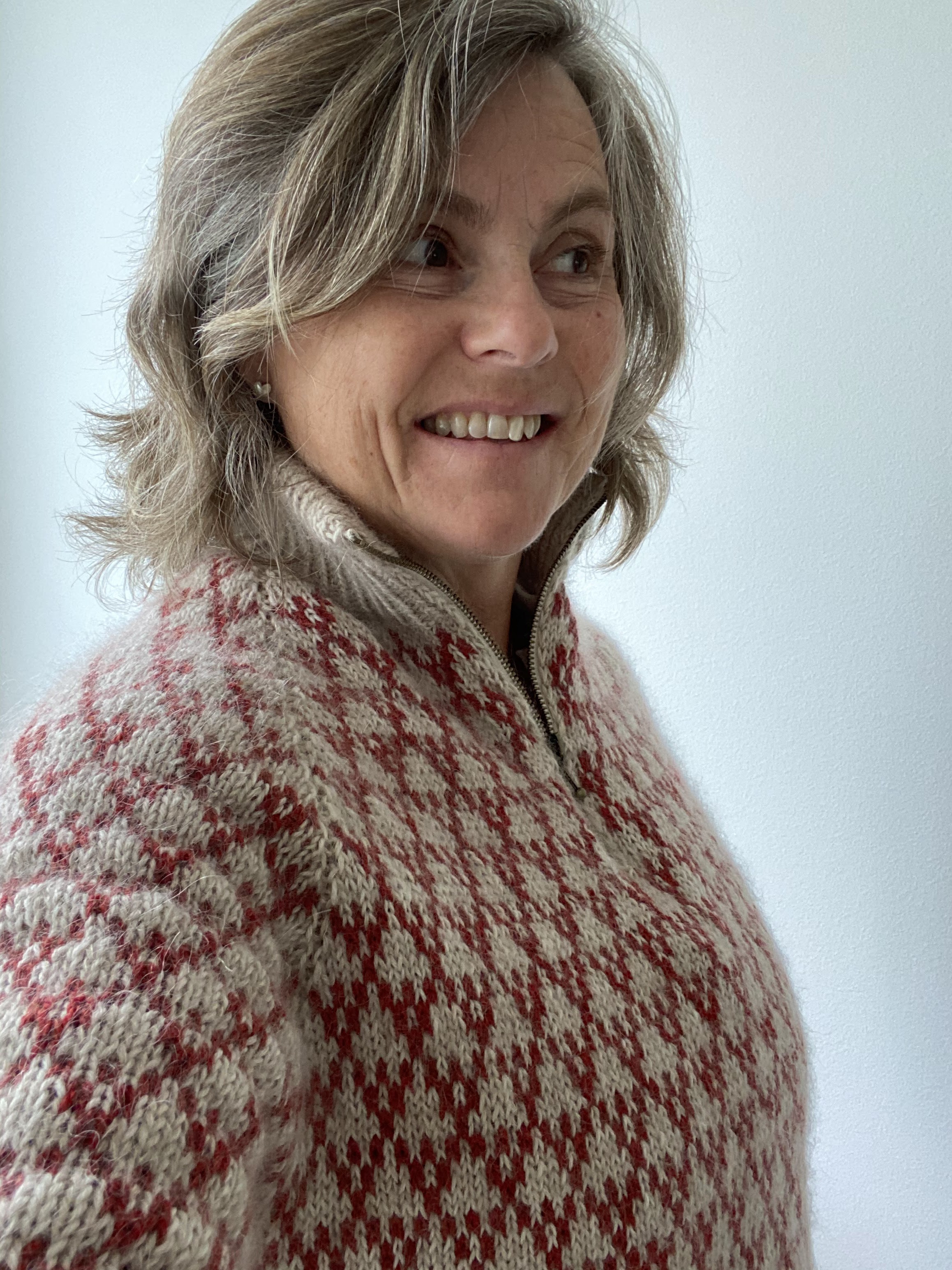 Genseren er inspirert av Spot sweater fra Anne Ventzel men er en mye smalere variant og den har fått høy hals med glidelås. Perfekt på litt kjølige sommerkvelder. 😊