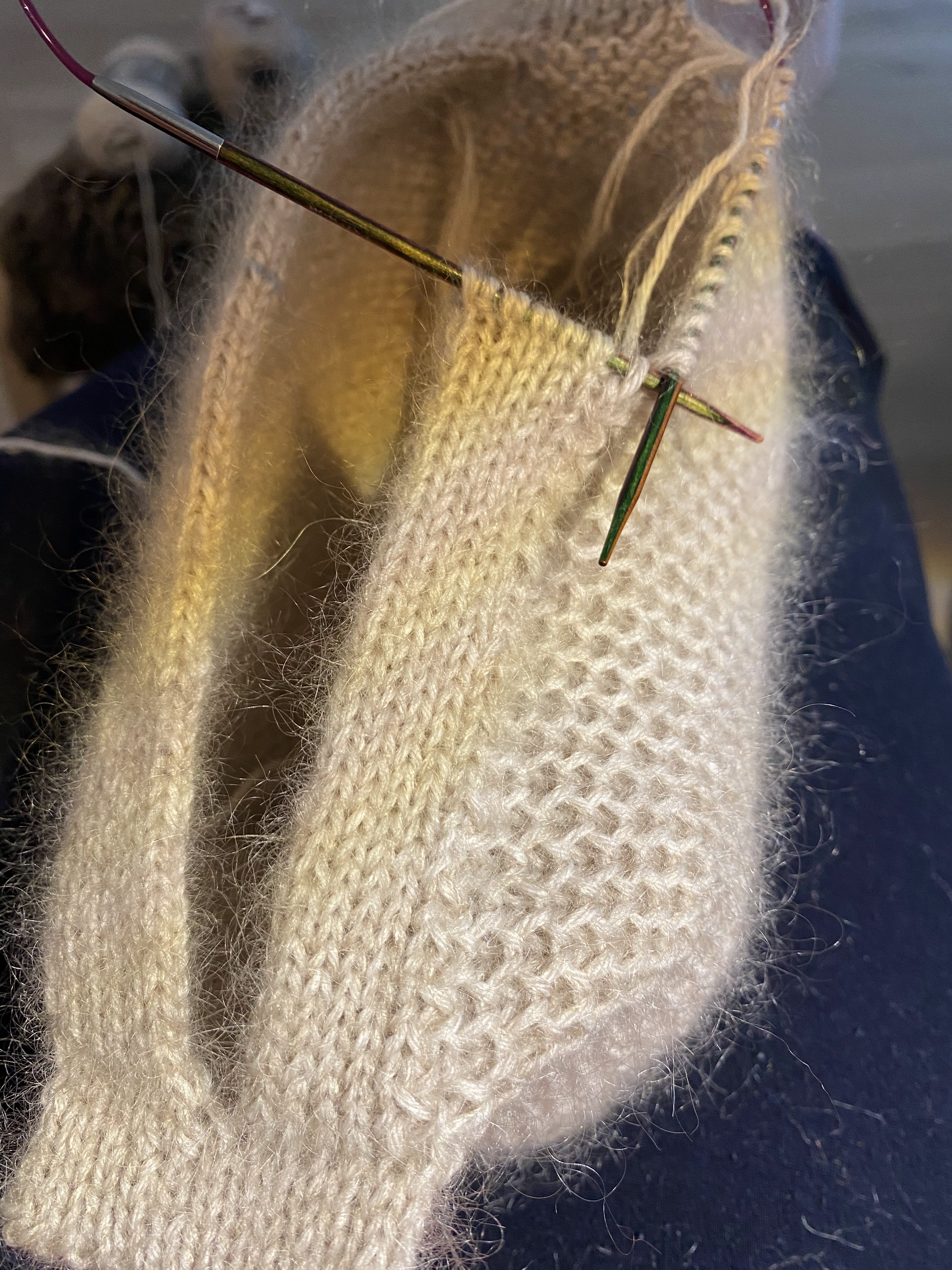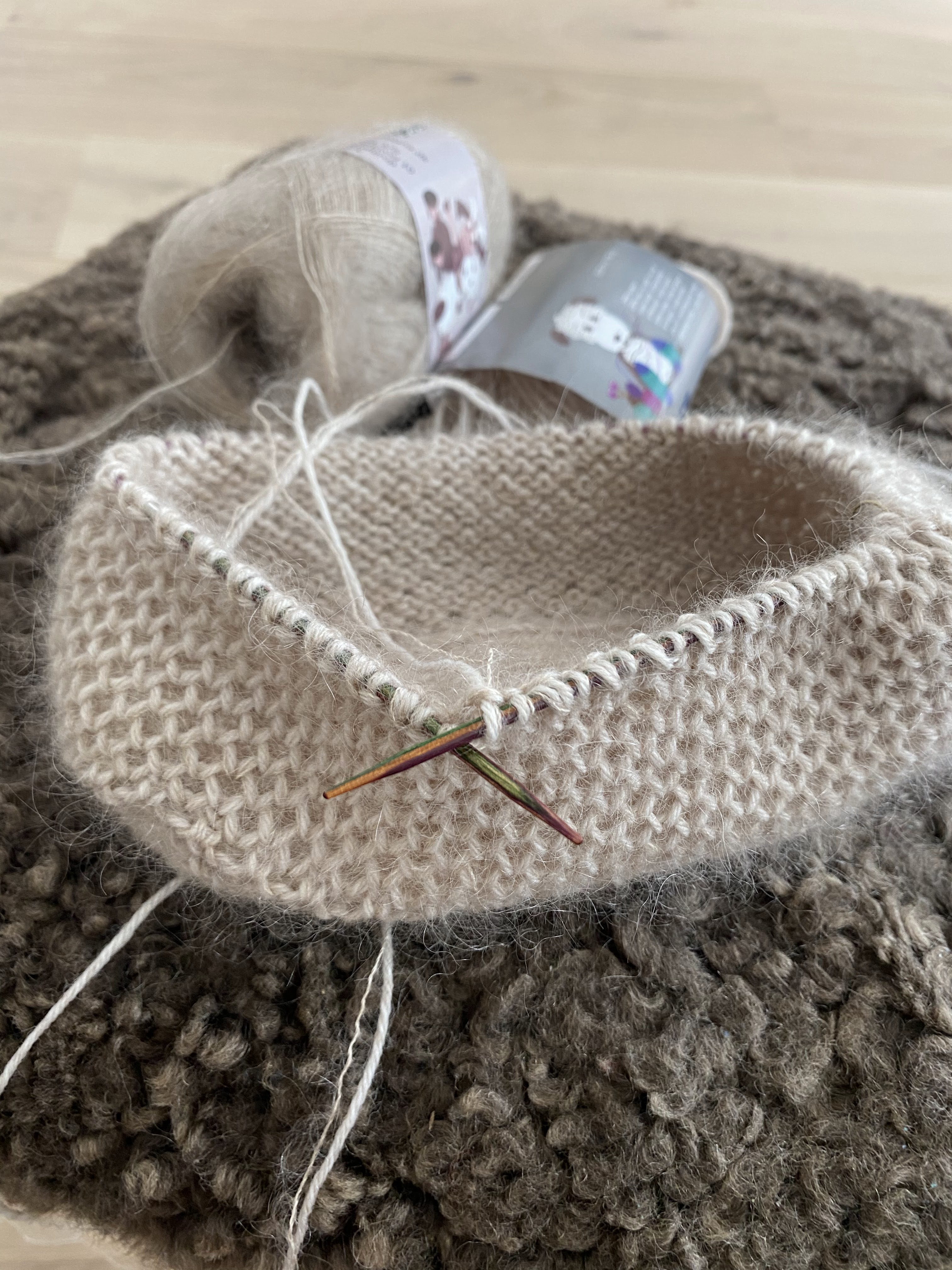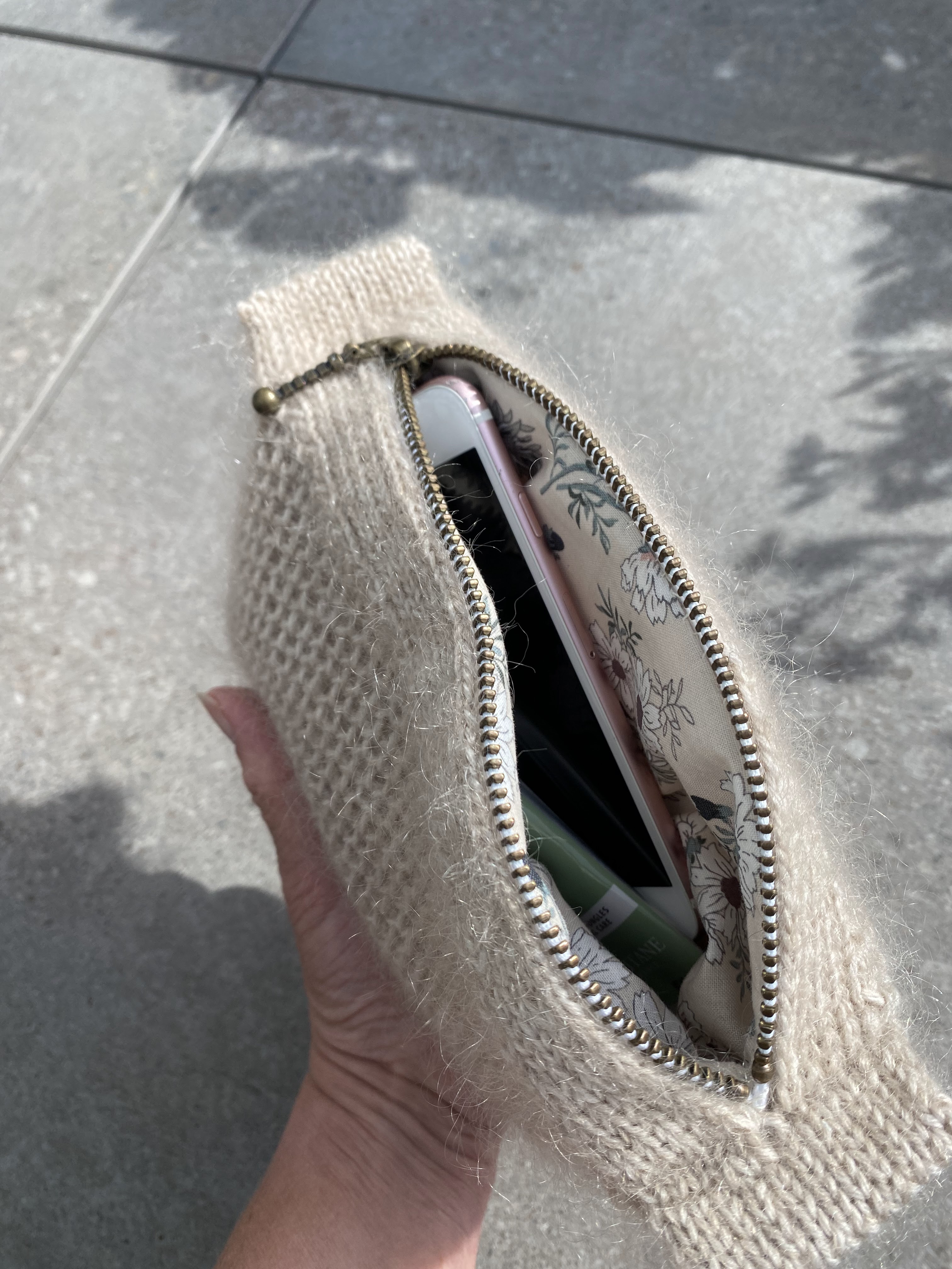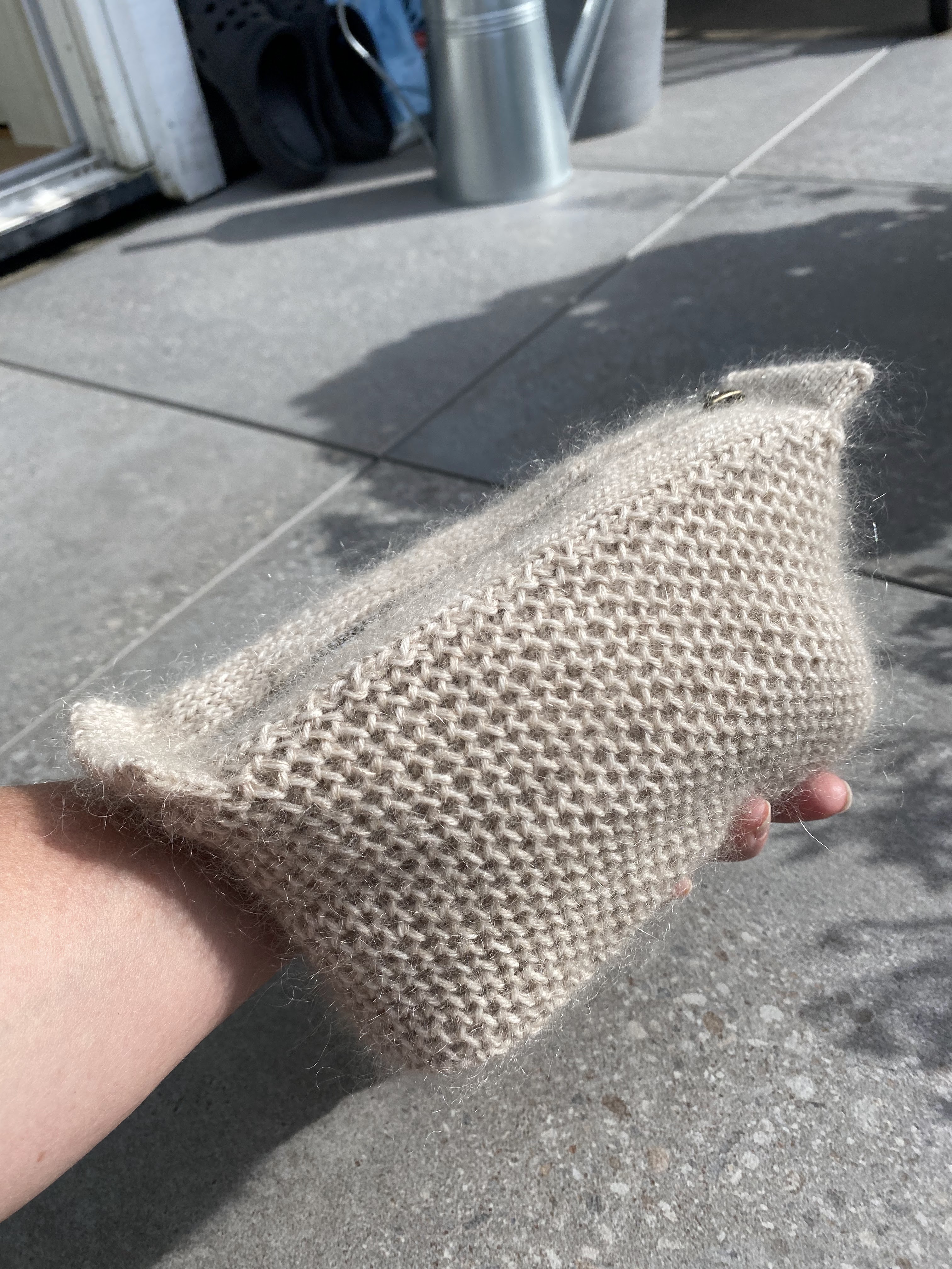 Dette var virkelig et kjekt strikkeprosjekt med mange nye teknikker å lære. 😊 Og resultat er er søt lite pung som brukes daglig.