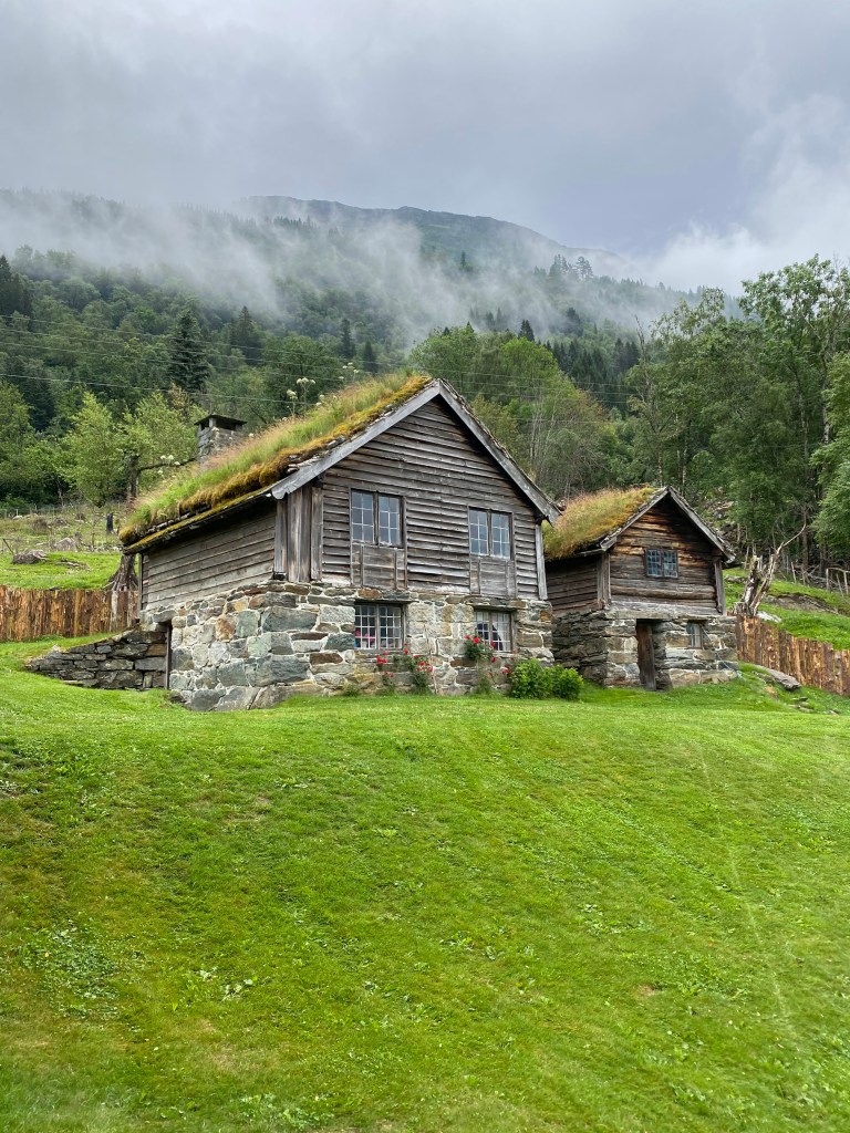 Første stopp Ullensvang og bygdetunet Skredhaugen.
