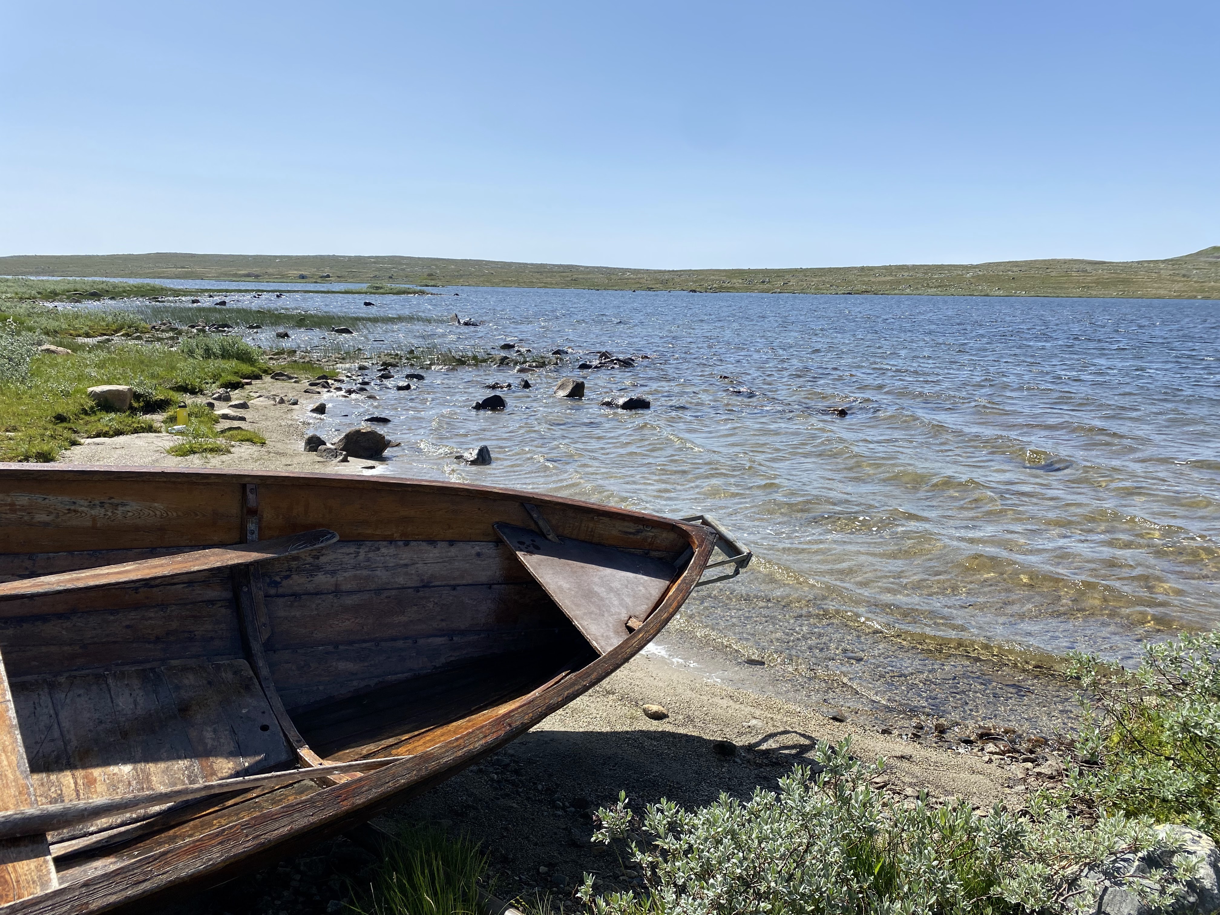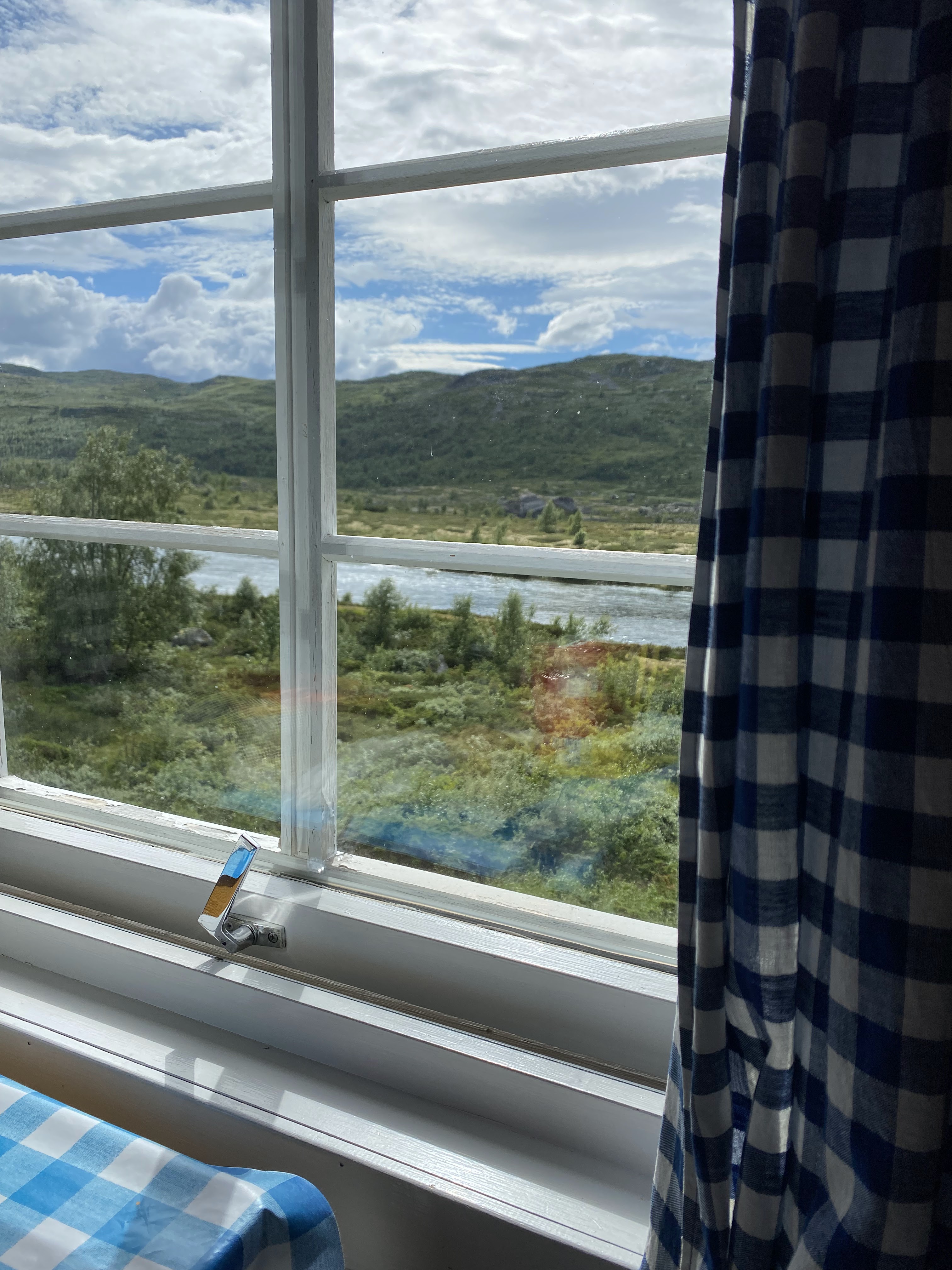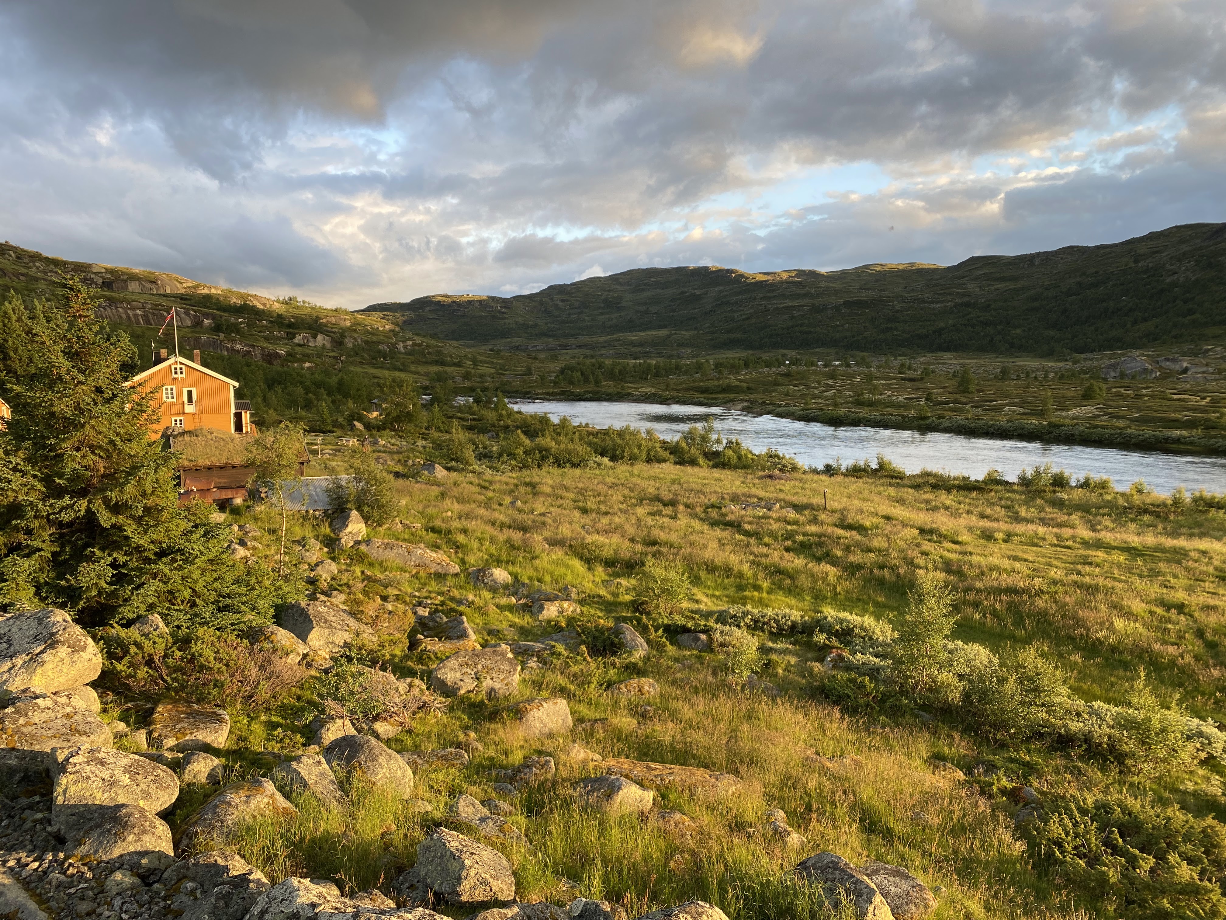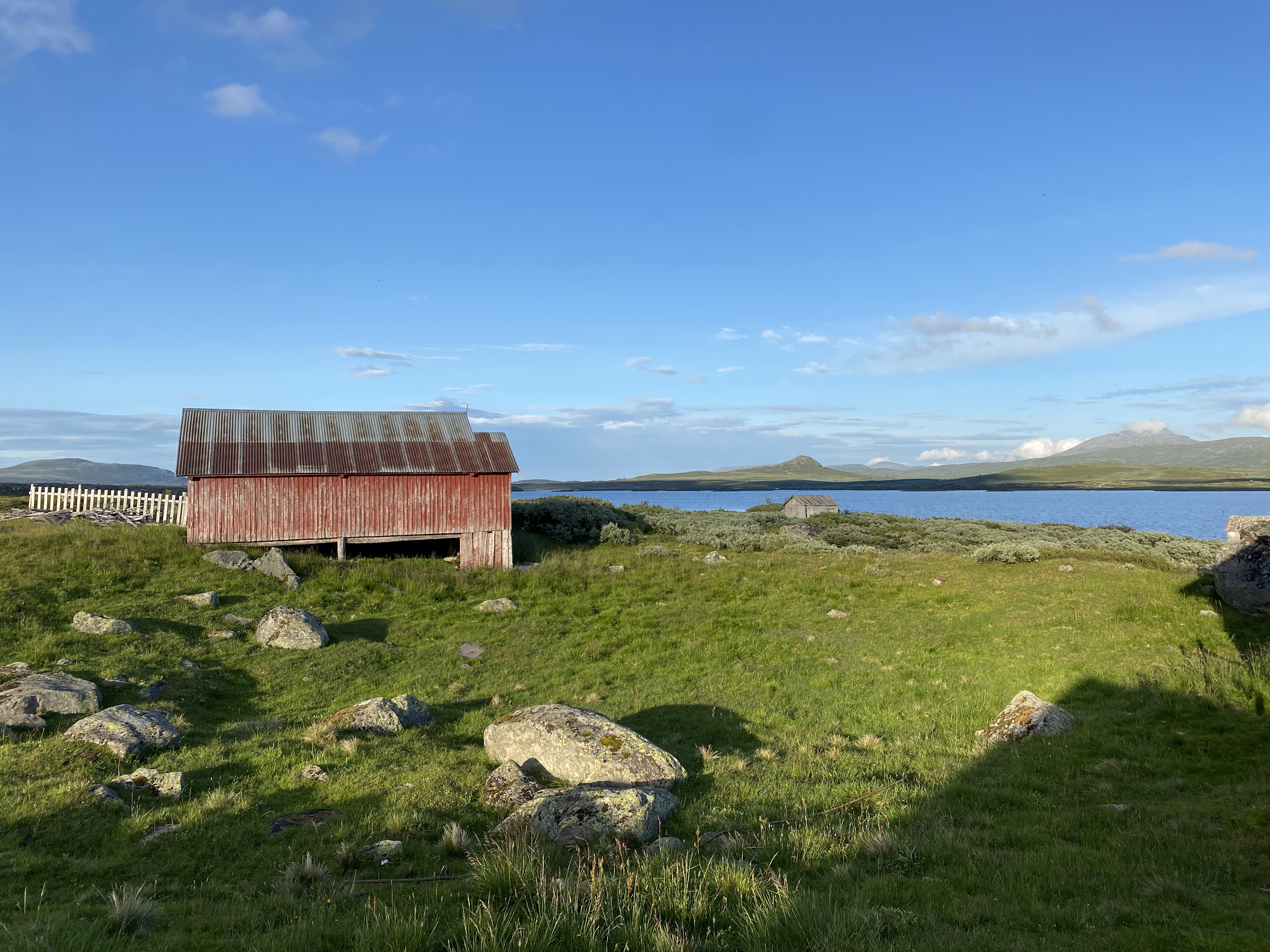 Så kjører vi videre til Haugseter fjellstue ved Vinstrevann, fortsatt i Jotunheimen. Her leier vi oss en liten hytte.