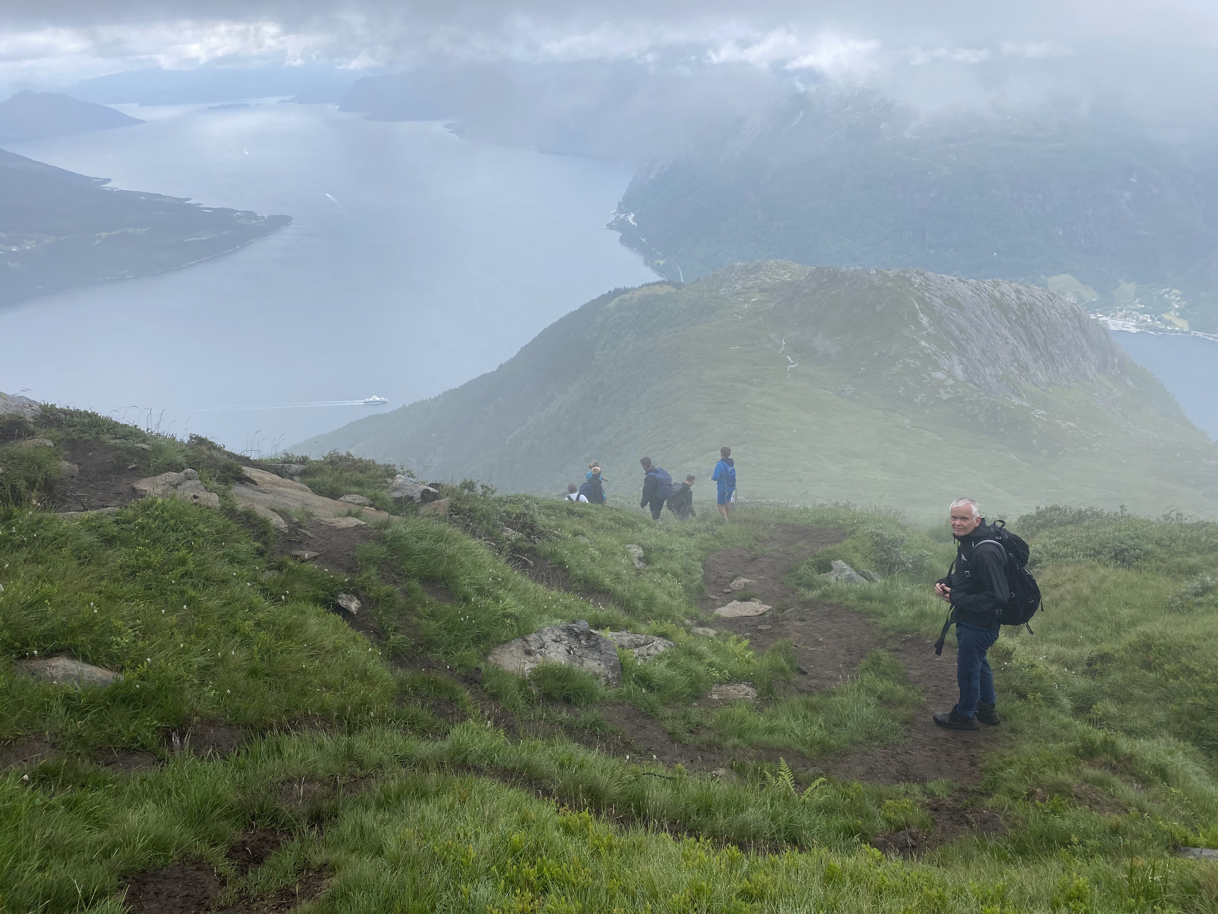 Topptur til Oksen, turen gikk fra Tjoflot (229 moh) og til toppen på 1241 moh. På toppen ble vi belønnet med 6 grader og null sikt.