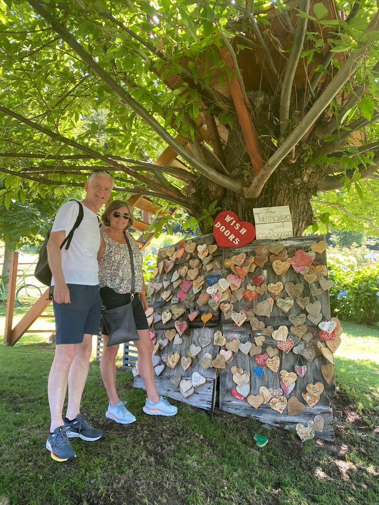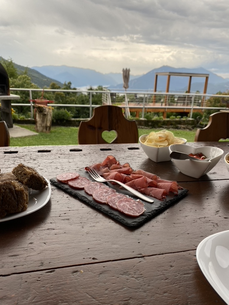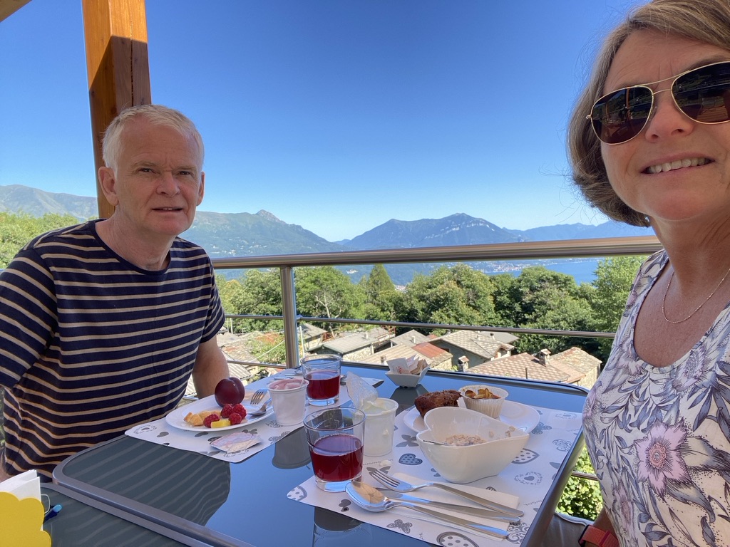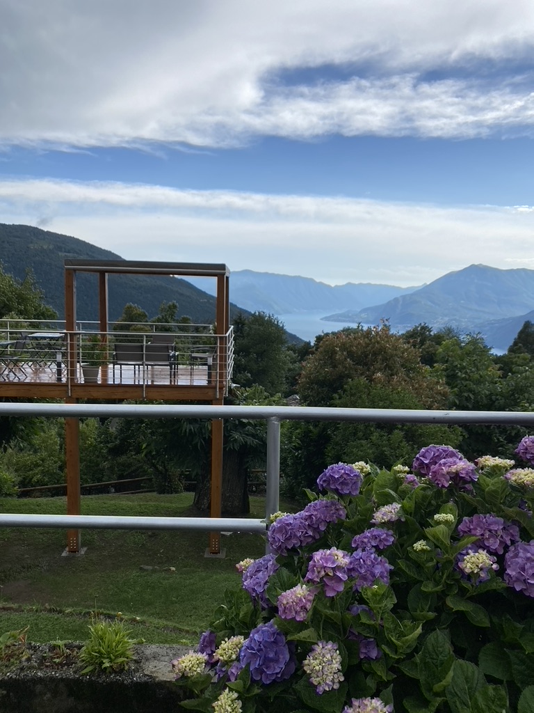 Vi kjøre videre til andre siden av Comosjøen og opp i fjellet til 2 cuori e un b&b. Et meget hyggelig vertskap møter oss og tar oss med til deres nydelige plass inne i skogen. Her kunne vi nye utsikten til Comosjøen i skiftende vær.